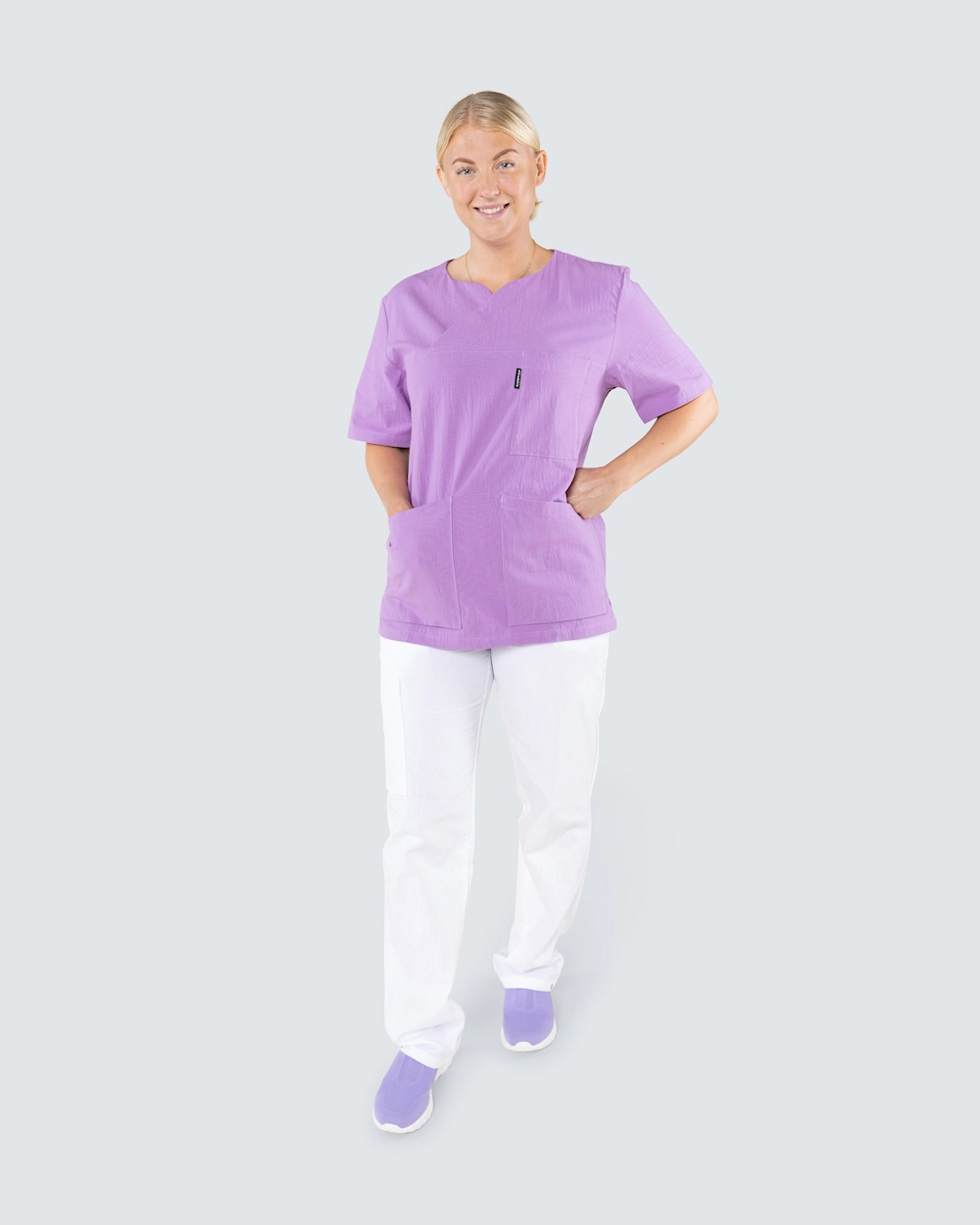 Kittel i en rett unisex modell med praktiske og romslige lommer som har godt om plass for arbeidsutstyr. Hoftelommene har mobillomme og nøkkelhank som du enkelt kan feste nøkler eller ID-kort. Kitlen har rund v-hals hvilket gir en fin detalj. Med splitt i sidene får du godt med bevegelsesfrihet. Kitlen er tilvirket i kriklet bomull hvilket gir en sval og behagelig følelse. Det kriklete stoffet minsker også behovet av skjøtsel, så som strykning.
