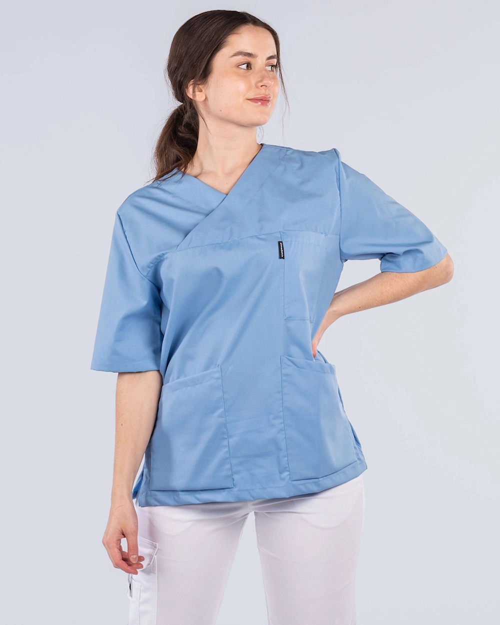 Almedahls Lyseblå V-bluse Unisex