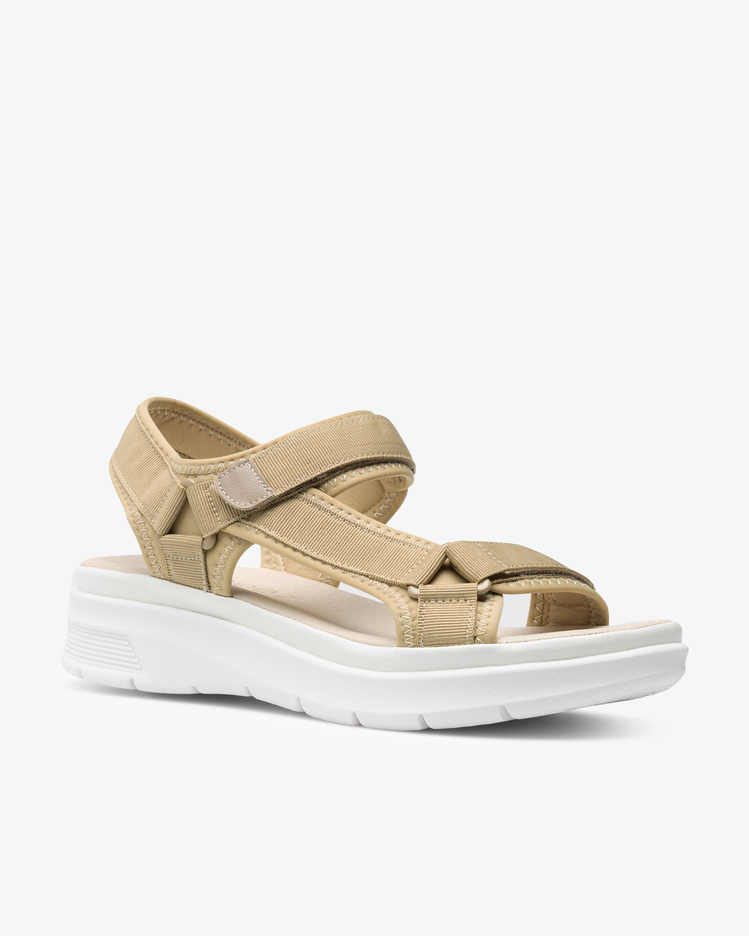 Stilig arbeidssandal med moderne design og smidig borrelås. Den tykke MD-gummisålen sikrer komfortabel og varig demping under lange arbeidsdager i helsevesenet. Dessuten gir den sandalen en trendy touch. Ankelremmen og hælremmen er justerbare for å gi en mest mulig tilpassbar passform, mens fotsengen gir myk komfort.