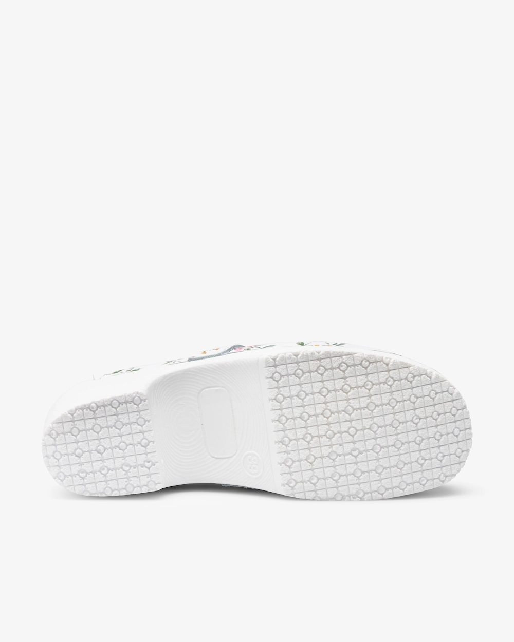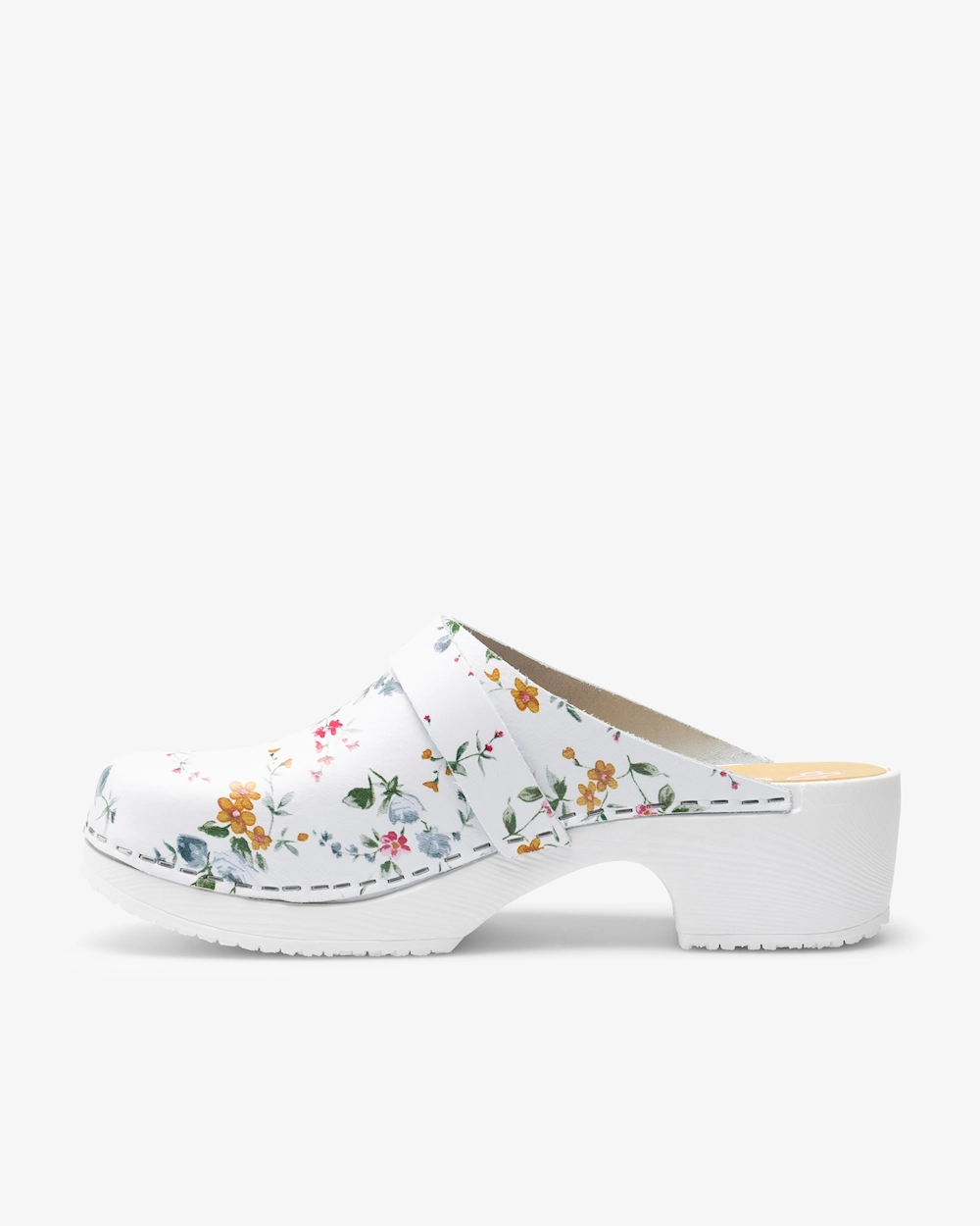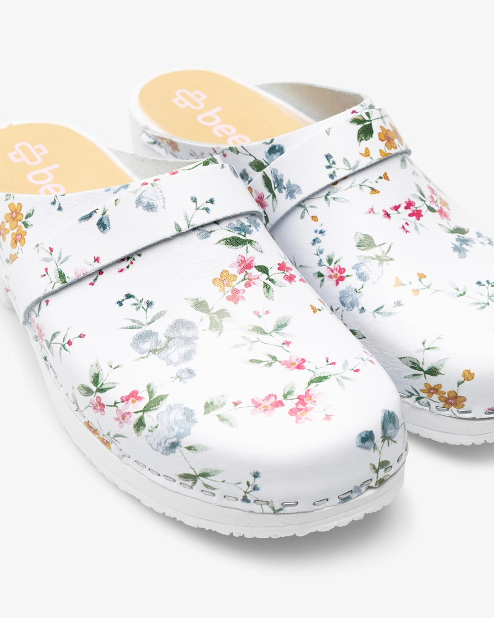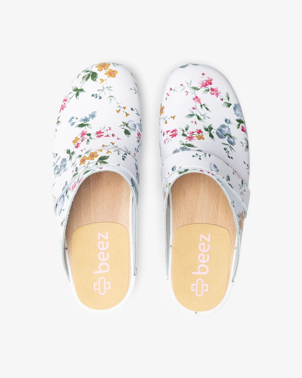 Beez Tradisjonell er en klassisk tresko i moderne farger og mønstre. Skoen har en stabil såle i PU med et innlegg av trefinér for å gi optimal støtte for føttene som står og går under lange arbeidsvakter. Skoen har en hard tå som beskytter mot lette smell. Med en overdel i PU-gummi kan du enkelt rengjøre og tørke av skoene - perfekt for deg som jobber i helsevesenet.