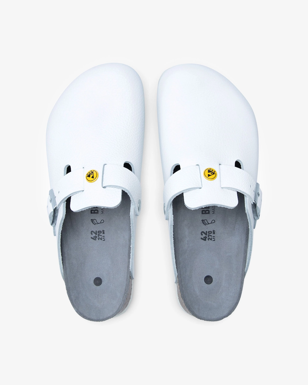 Birkenstock Boston ESD forhindrer elektriske utladninger og kan med fordel brukes i elektroingeniøryrker. Med sin spesialutviklede ESD-såle sendes det ut kontinuerlige mikroutladninger, noe som betyr beskyttelse for både brukeren og elektriske komponenter.
