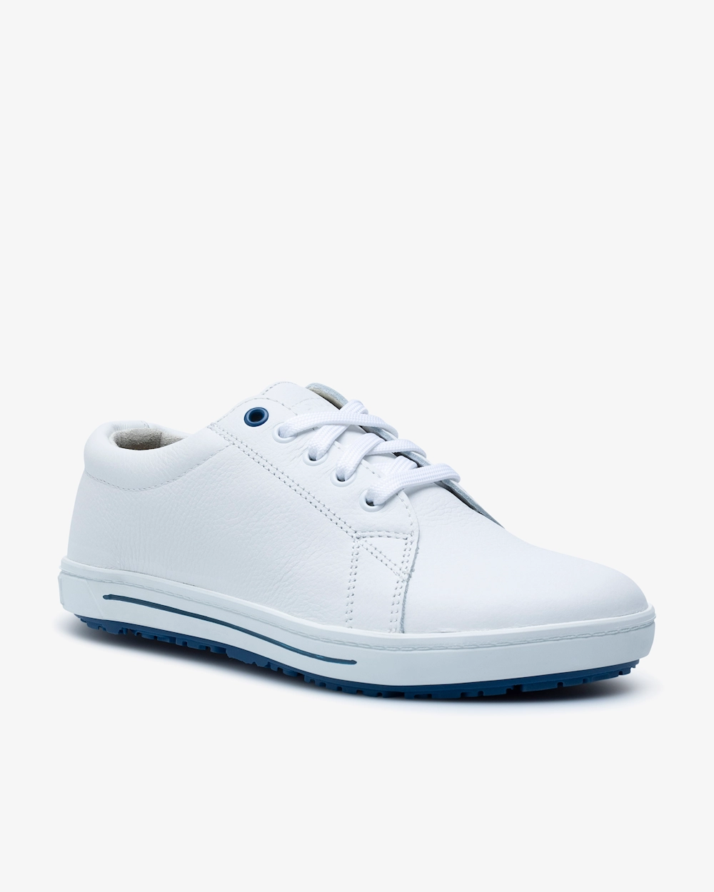 QO500 fra BIRKENSTOCK er en stilig og moderne snøresko som er utviklet for deg som jobber lange dager på beina - også i krevende miljøer. Den anatomisk formede fotsengen av kork og mikrofiber er utskiftbar og gir stabil støtte og behagelig avlastning gjennom hele arbeidsdagen.
