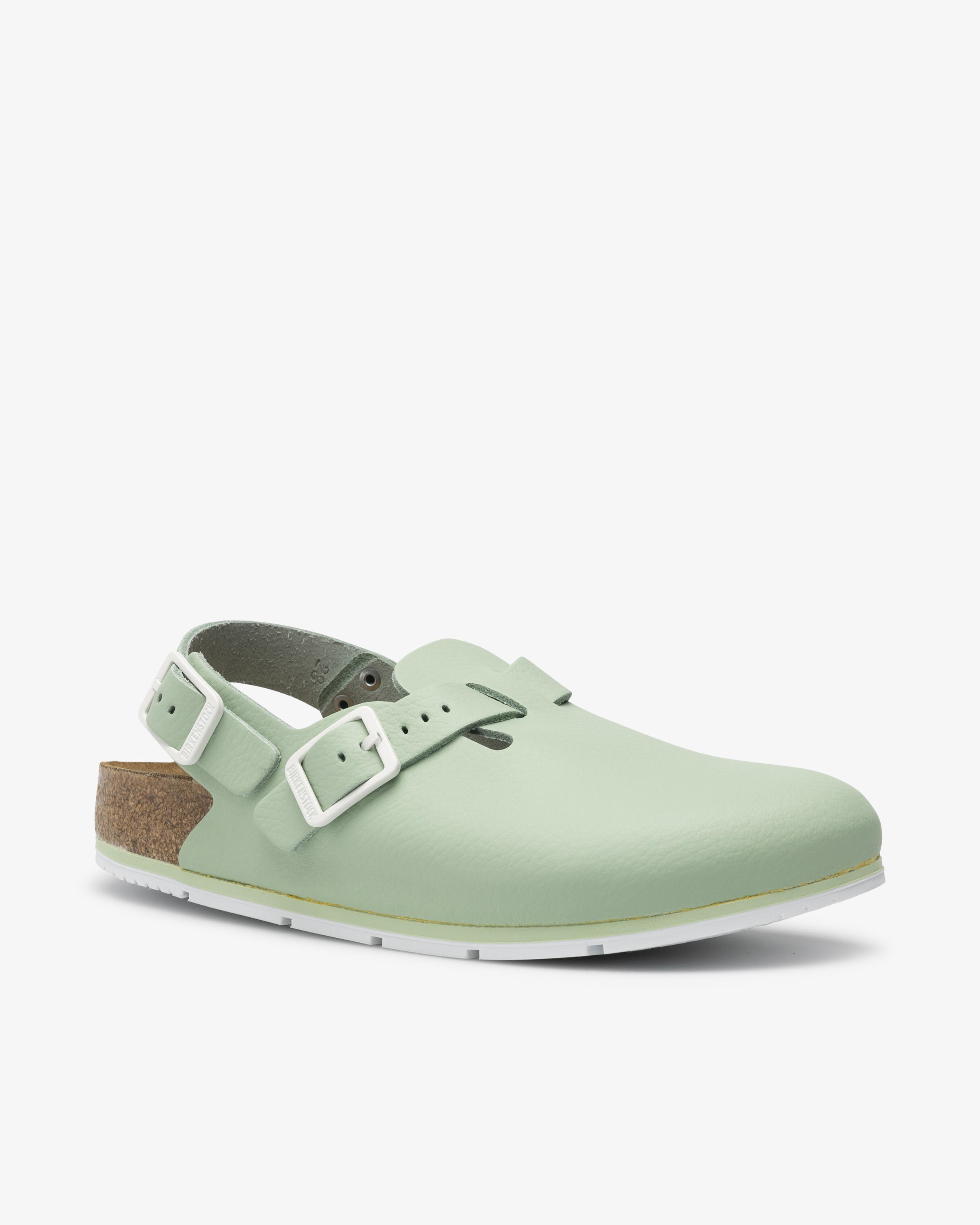 Sandalene Tokio PRO fra Birkenstock har en perfekt kombinasjon av komfort og sikkerhet for helsepersonell som setter pris på kvalitet og funksjon. Den anatomisk formede fotsengen i kork-lateks i semsket skinn kombinert med en dempende EVA-mellomsåle, sikrer optimal komfort ved lange arbeidsøkter. Sandalens overdel er laget av PU-behandlet naturskinn for økt holdbarhet. Med en olje- og fettbestandig yttersåle i gummi og justerbare stropper, inkludert hælstropp, vil skoen være praktisk og sikker. Det sklisikre designet er testet etter EN ISO 20347:2012 (SRA-kategori), noe som gjør den ideell for arbeidsmiljøer der sikkerhet er i fokus.