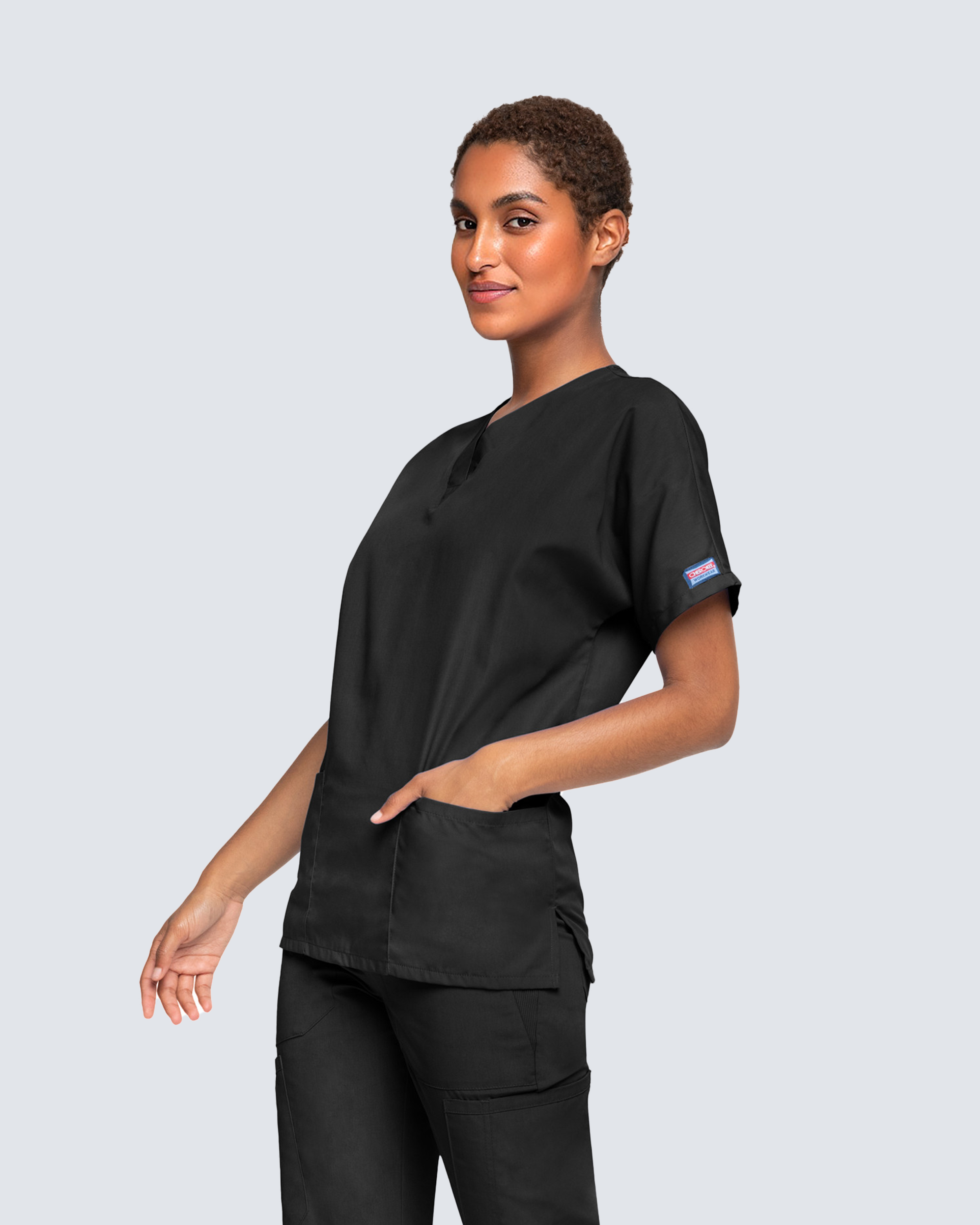 Cherokee tunika med V-hals er det perfekte valget for deg som er på utkikk etter slitesterkt og funksjonelt arbeidstøy i klassisk modell. Tunikaen har en stilig V-hals og praktiske splitter på sidene som gir utmerket bevegelsesfrihet.