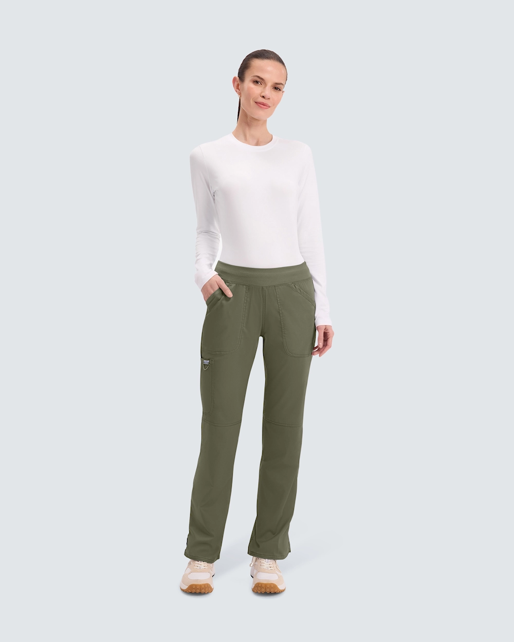 Den moderne arbeidsbuksen med rett passform kombinerer stil og funksjon. Buksen har normal midje med bred, strikket midje og forsterket elastisk linning som gir en behagelig passform. Fire praktiske lommer gjør det enkelt å få med seg viktig utstyr og verktøy. Slitesterkt og lettstelt materiale med stretch. Ideell for helsepersonell som ønsker både komfort og profesjonell stil i arbeidsklærne sine.