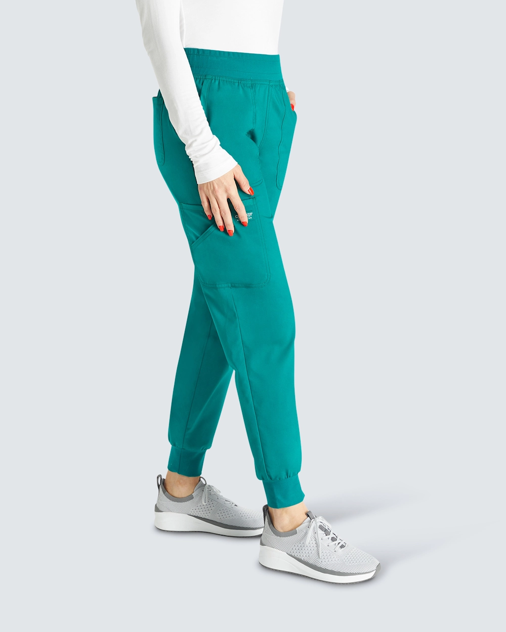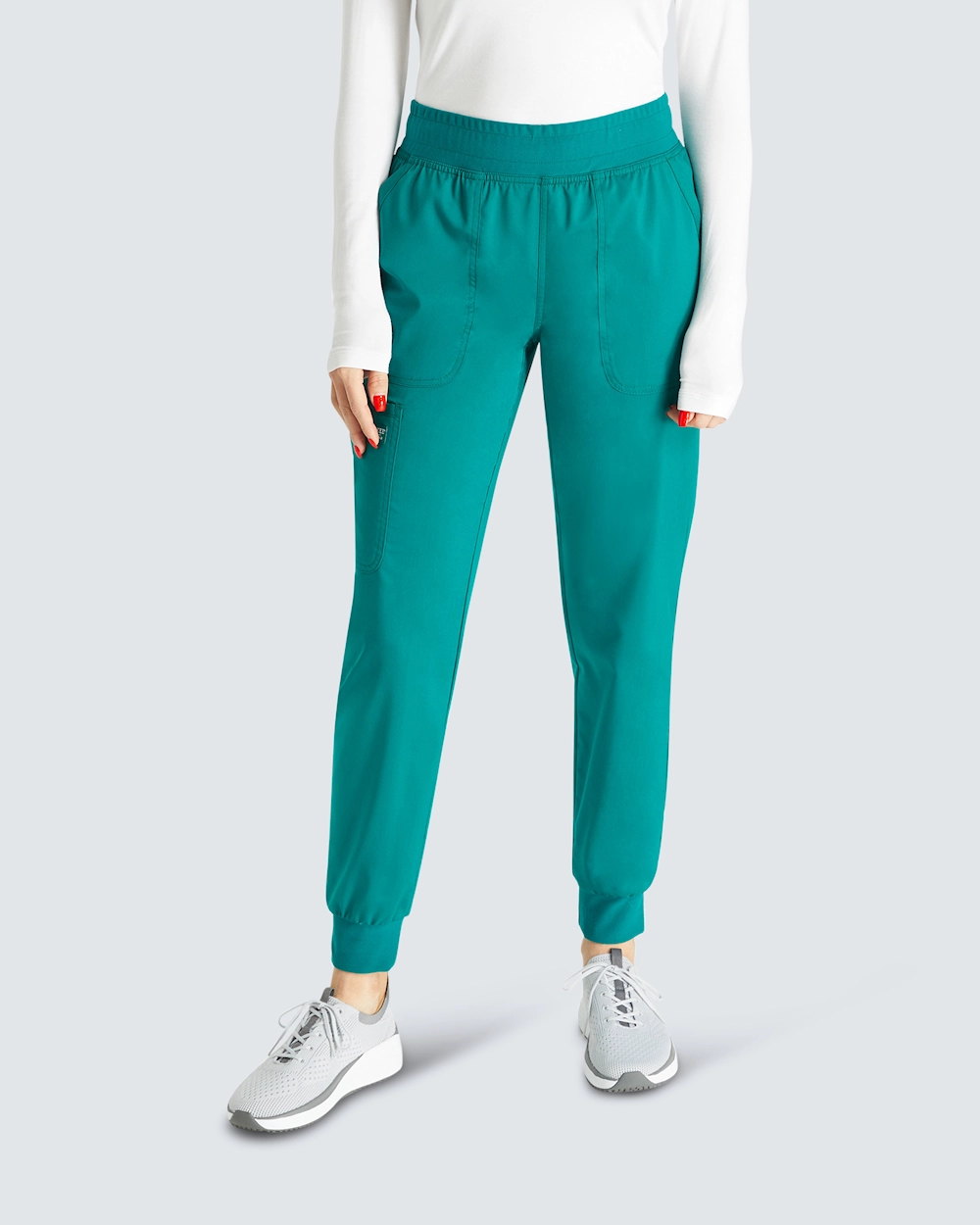 Disse klassiske joggebuksene med mansjett kombinerer stil og funksjon for helsepersonell. Buksen har midjehøy midje, elastisk linning og snøring bak, noe som gir komfort hele dagen. Lommene inkluderer skrålommer foran, en baklomme og en dobbel sidelomme med instrumentløkke for enkel tilgang til verktøy. Den moderne silhuetten er perfekt for både profesjonelle og dynamiske arbeidsmiljøer.