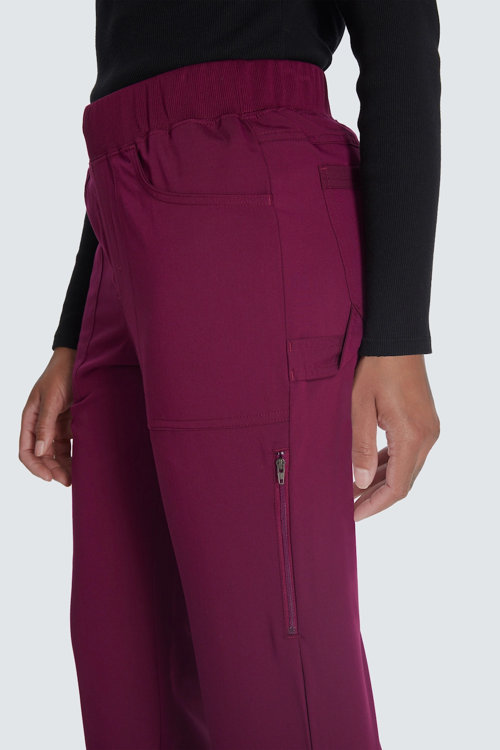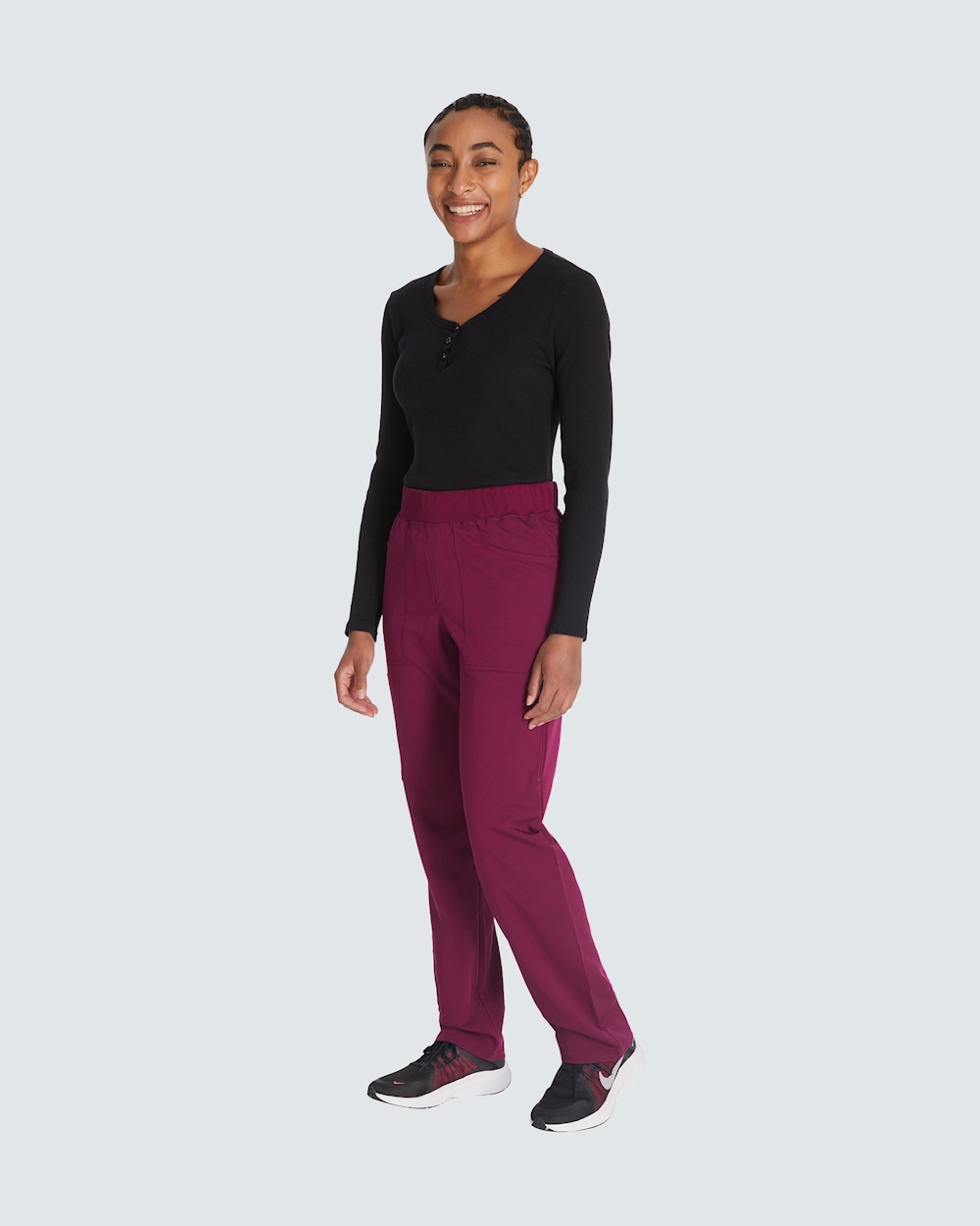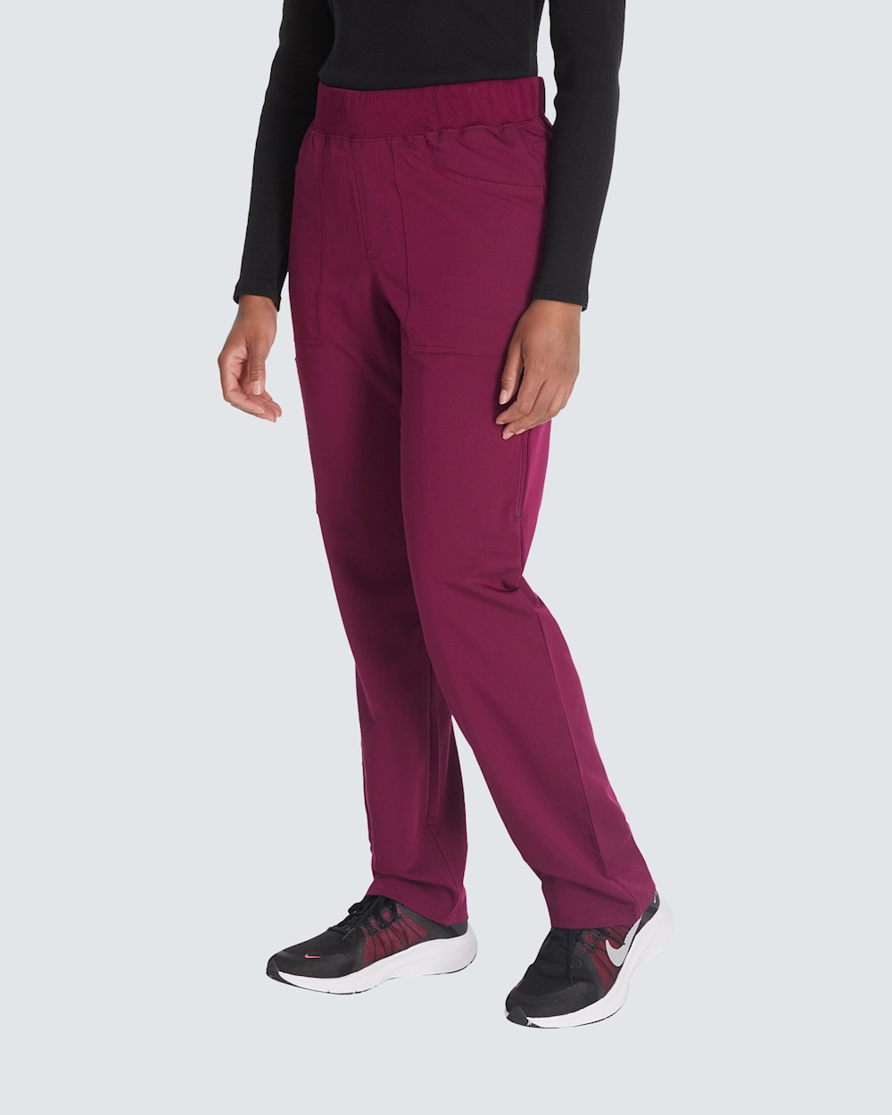Komfortable arbeidsbukser med smale ben og normal høy midje. Arbeidsbuksen gir enestående komfort med et pull-on-design og myk ribbestrikket midje med skjult snøring.