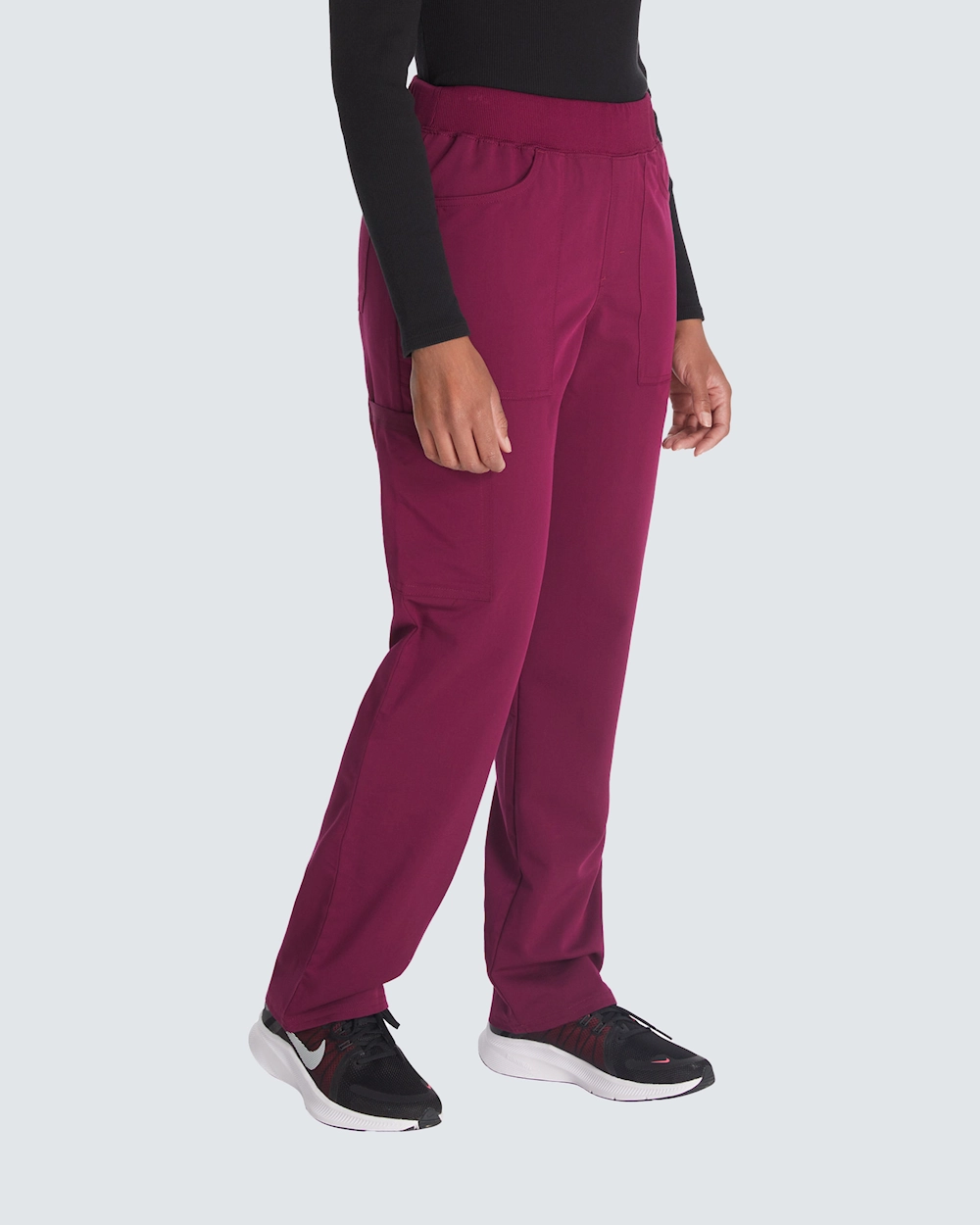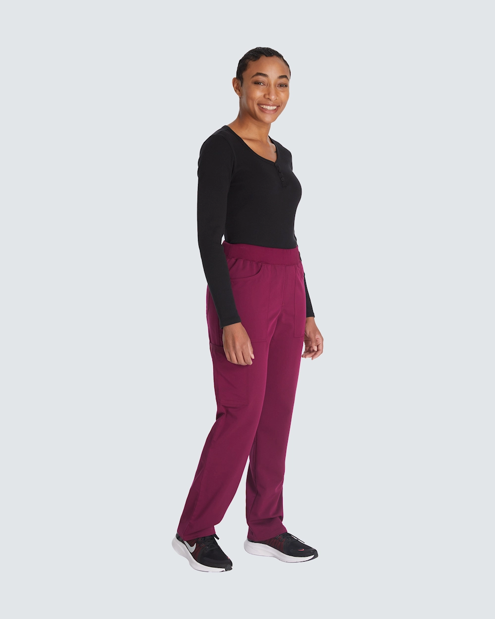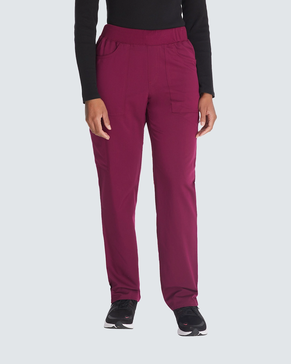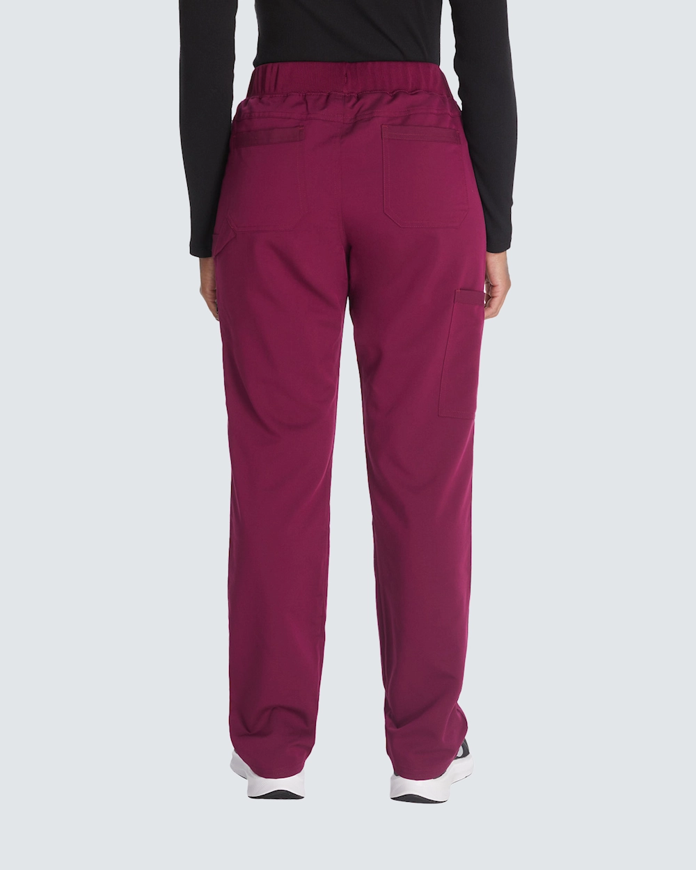 Komfortable arbeidsbukser med smale ben og normal høy midje. Arbeidsbuksen gir enestående komfort med et pull-on-design og myk ribbestrikket midje med skjult snøring.