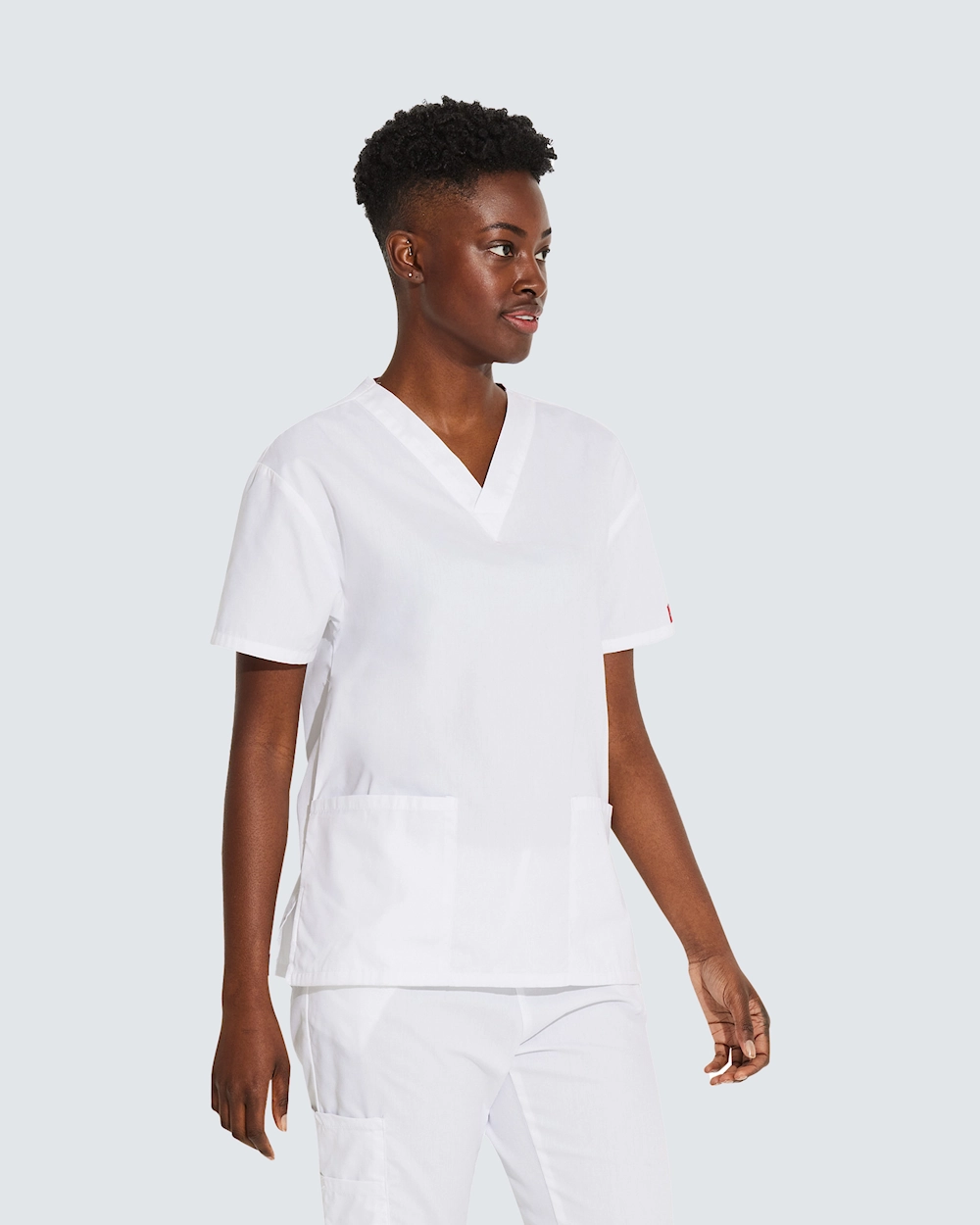 Dickies kittel med V-hals er designet for en arbeidsdag i helsevesenet. Med sin klassiske passform og høyere splitt gir kittelen optimal bevegelsesfrihet og komfort.
