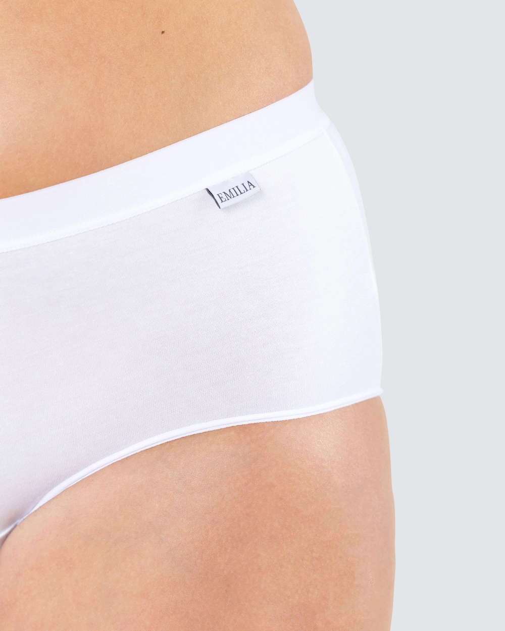 Stilren hipstertruse med middelshøy midje i myk og fleksibel bambus. Takket være bambusens runde og glatte fibre, sitter trusen komfortabelt selv mot sensitiv hud. Bambus har naturlige fukt- og temperaturregulerende egenskaper som gjør materialet godt egnet for undertøy og basisplagg.