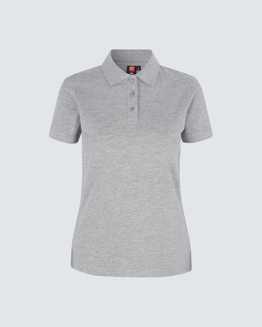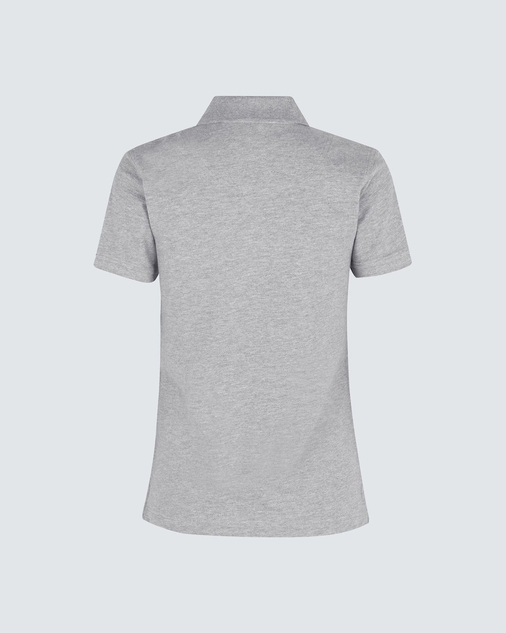 Denne lett innsvingede pikégenseren for damer har stretchmateriale og splitt på sidene. Stilrene ton-i-ton knapper foran midt.