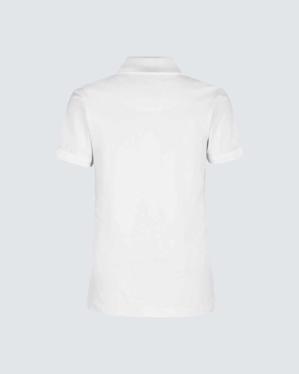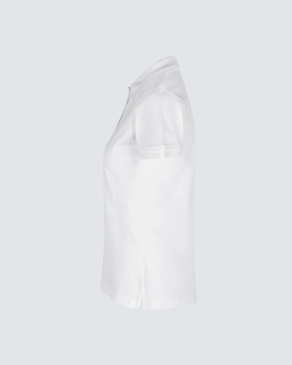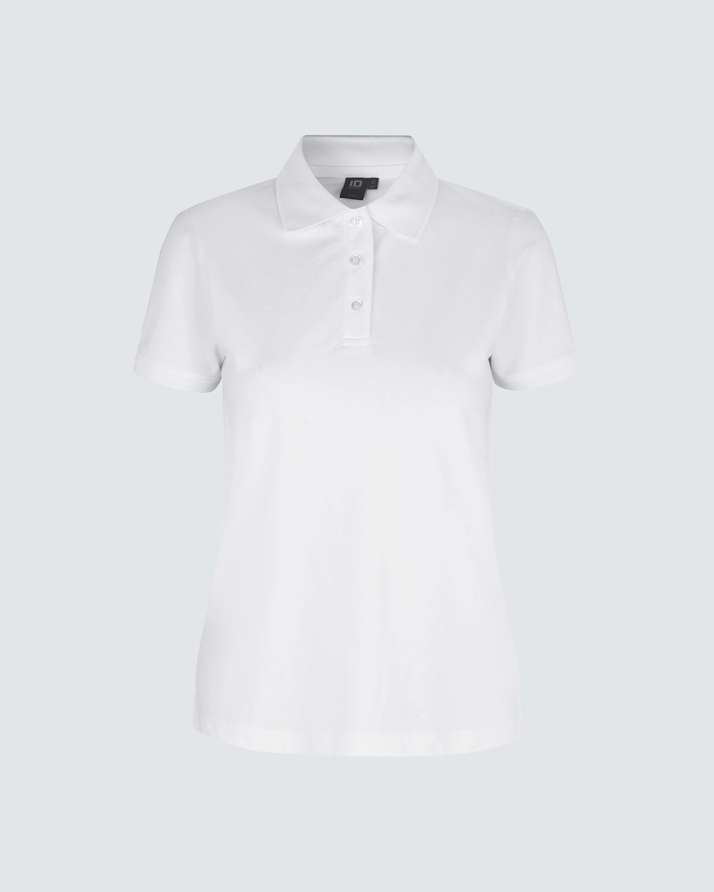 Denne lett innsvingede pikégenseren for damer har stretchmateriale og splitt på sidene. Stilrene ton-i-ton knapper foran midt.