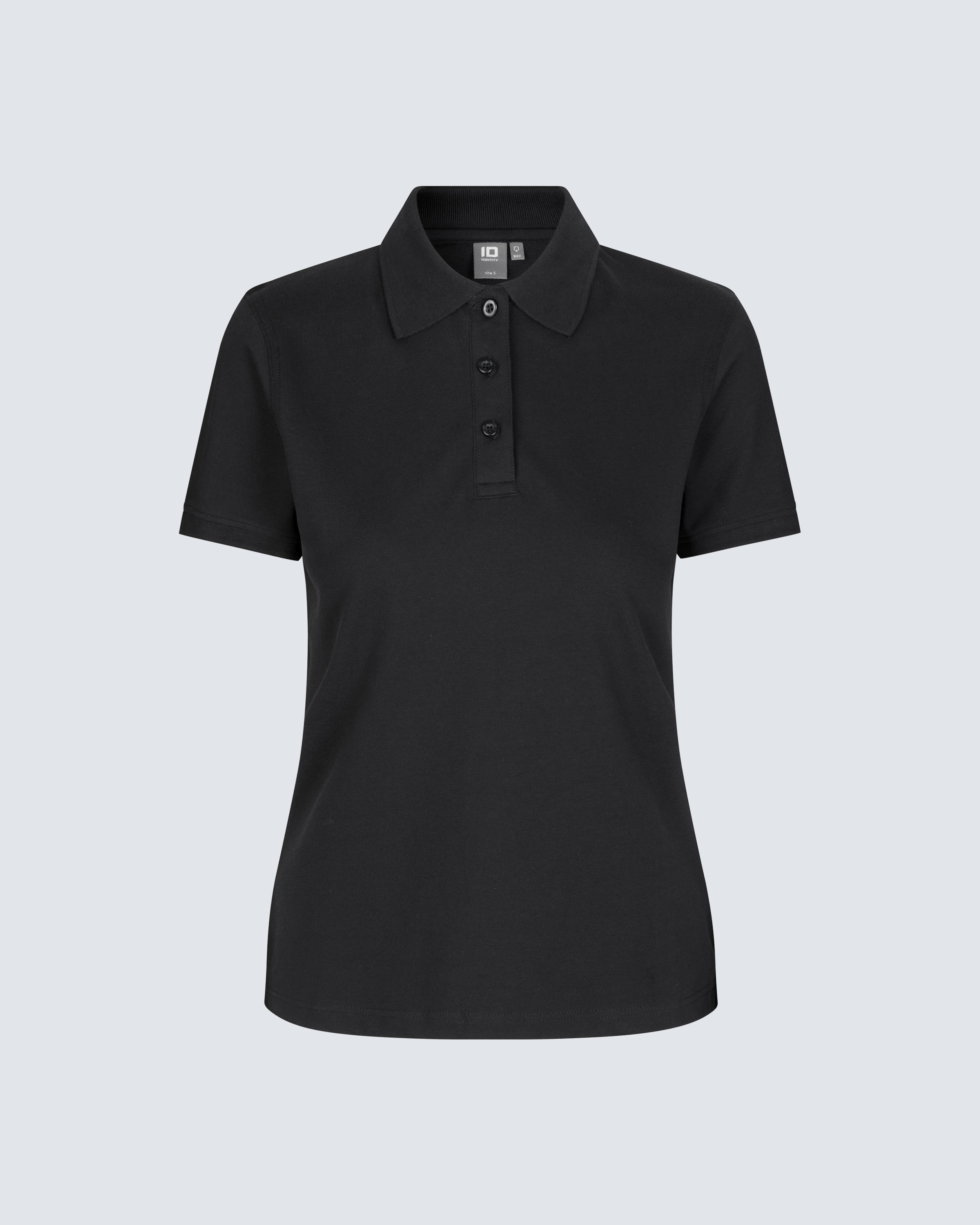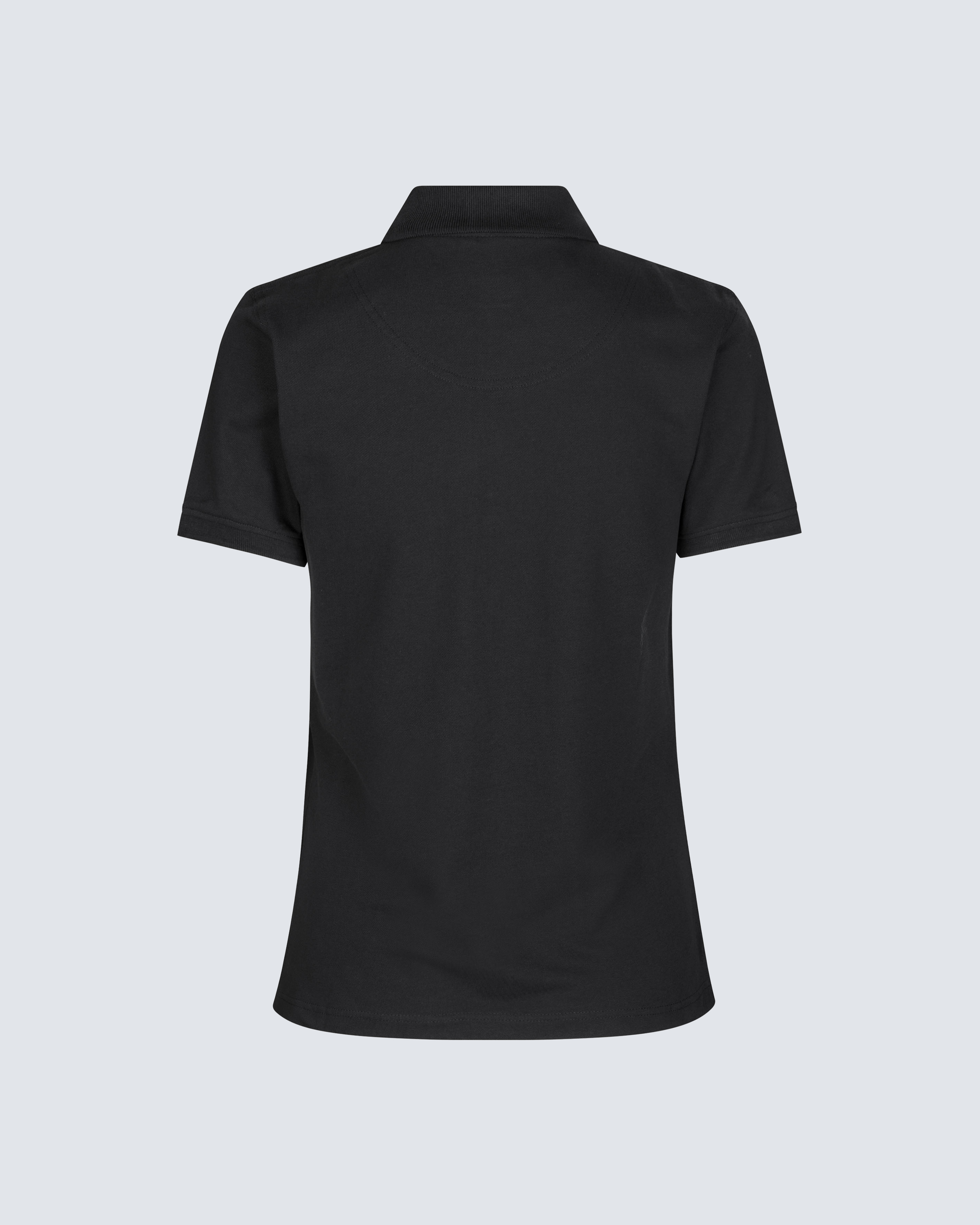 Denne lett innsvingede pikégenseren for damer har stretchmateriale og splitt på sidene. Stilrene ton-i-ton knapper foran midt.