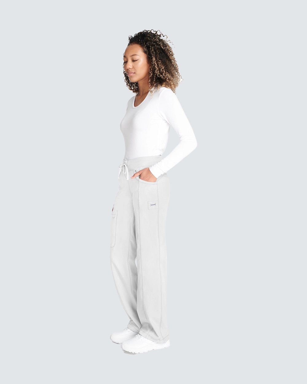 Infinity arbeidsbukse med rette ben og linning er komfortabel for helsepersonell. Den er enkelt designet for å gi mer fleksibilitet og bevegelsesfrihet. Si farvel til regelmessig justering av linningen. 4-veis-stretch og fuktavvisende materiale bidrar til at du holder deg sval og behagelig i hektiske omgivelser.