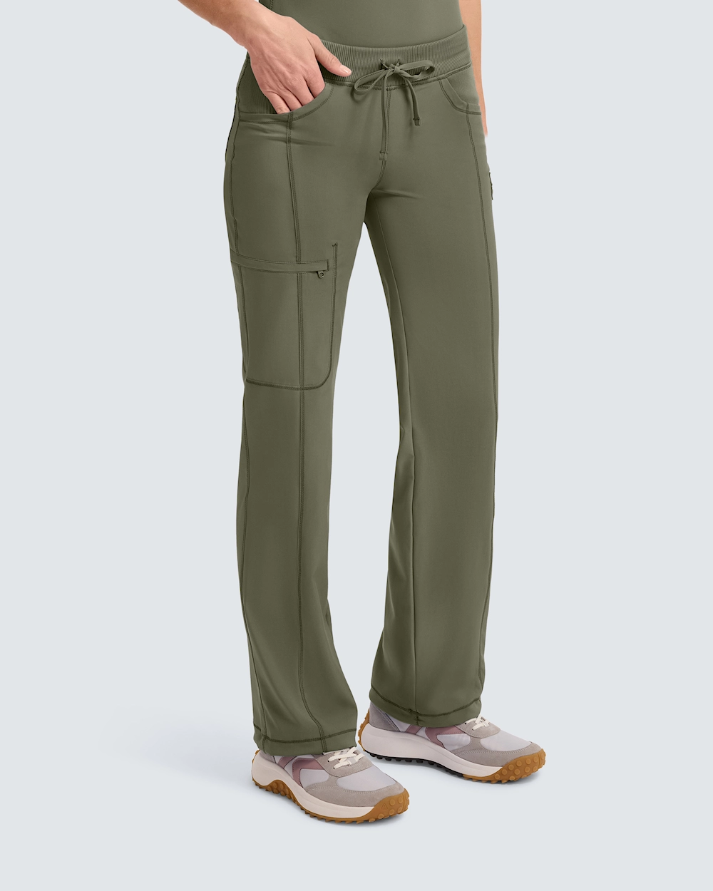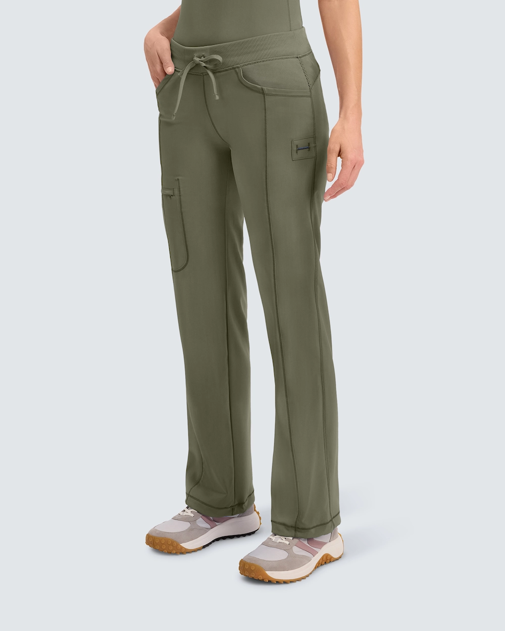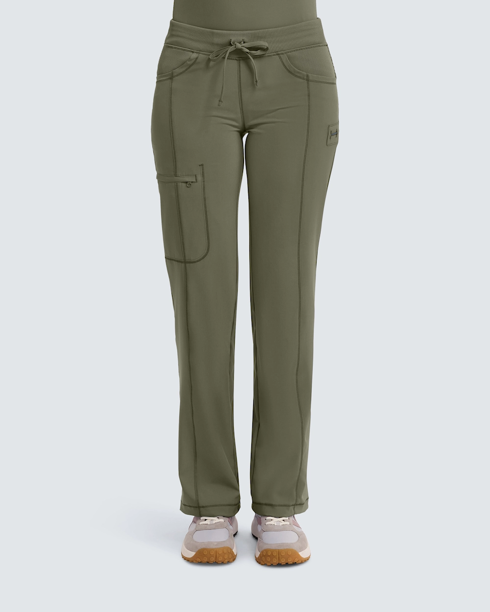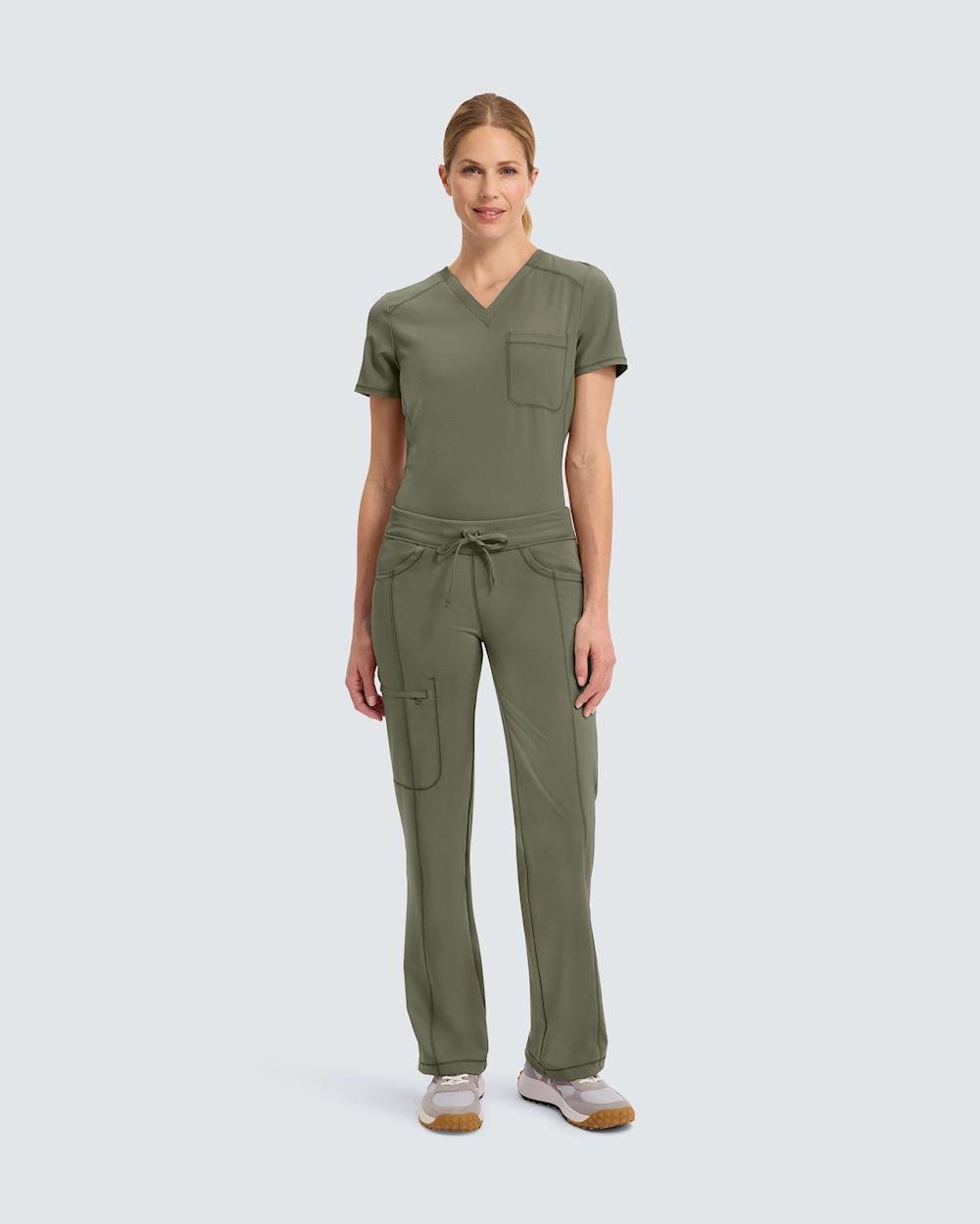 Infinity arbeidsbukse med rette ben og linning er komfortabel for helsepersonell. Den er enkelt designet for å gi mer fleksibilitet og bevegelsesfrihet. Si farvel til regelmessig justering av linningen. 4-veis-stretch og fuktavvisende materiale bidrar til at du holder deg sval og behagelig i hektiske omgivelser.