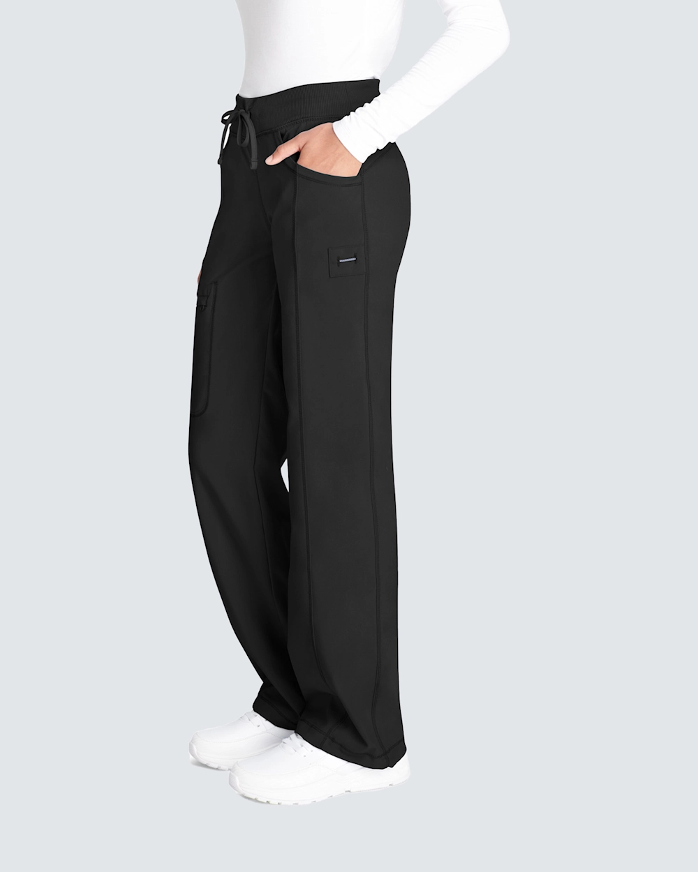 Infinity arbeidsbukse med rette ben og linning er komfortabel for helsepersonell. Den er enkelt designet for å gi mer fleksibilitet og bevegelsesfrihet. Si farvel til regelmessig justering av linningen. 4-veis-stretch og fuktavvisende materiale bidrar til at du holder deg sval og behagelig i hektiske omgivelser.