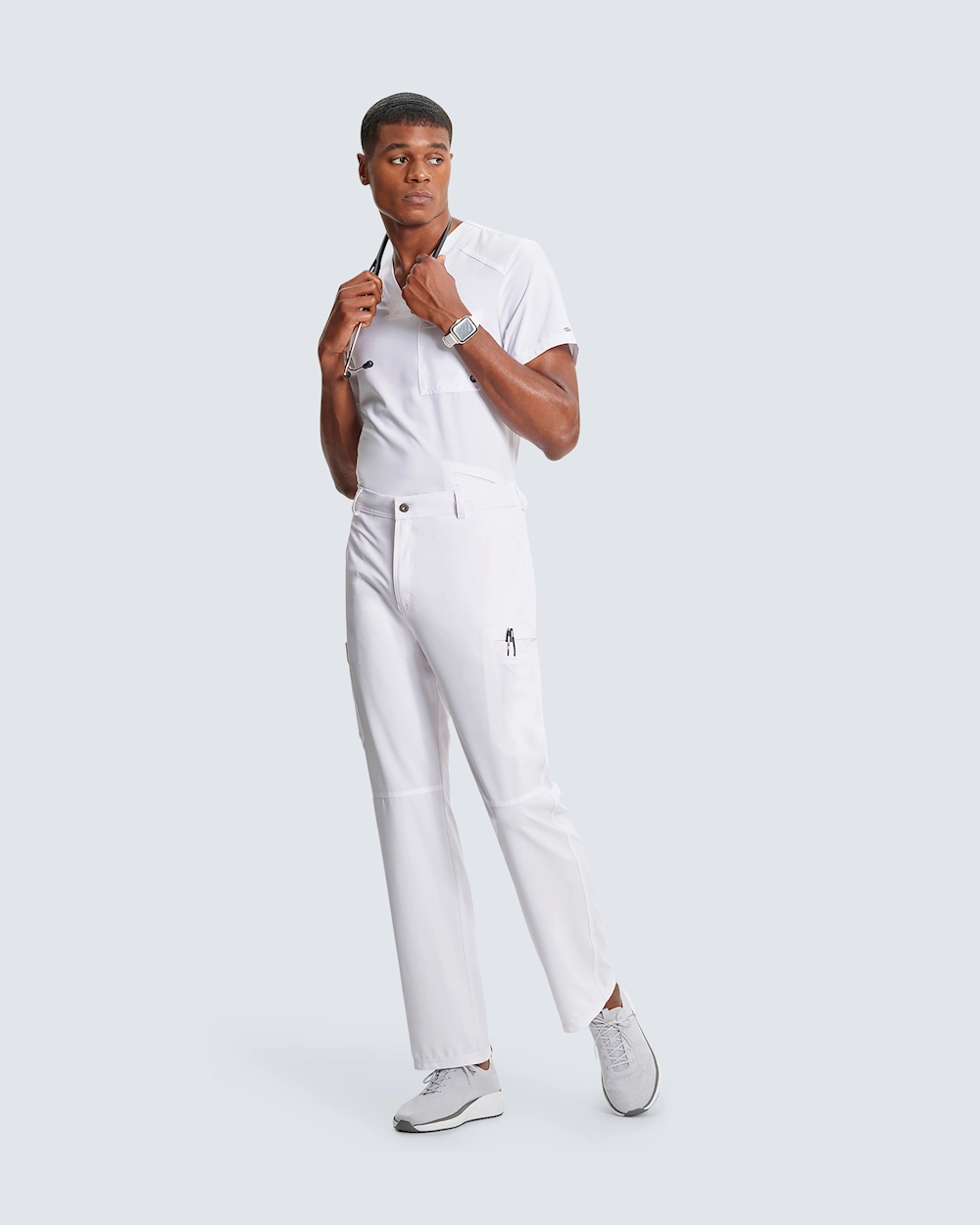 Infinity arbeidsbukse for herrer er designet med knapp og glidelås og har en smal passform som gir en moderne silhuett. Med justerbar snøring og strikk på baksiden blir buksen komfortabel og allsidig.