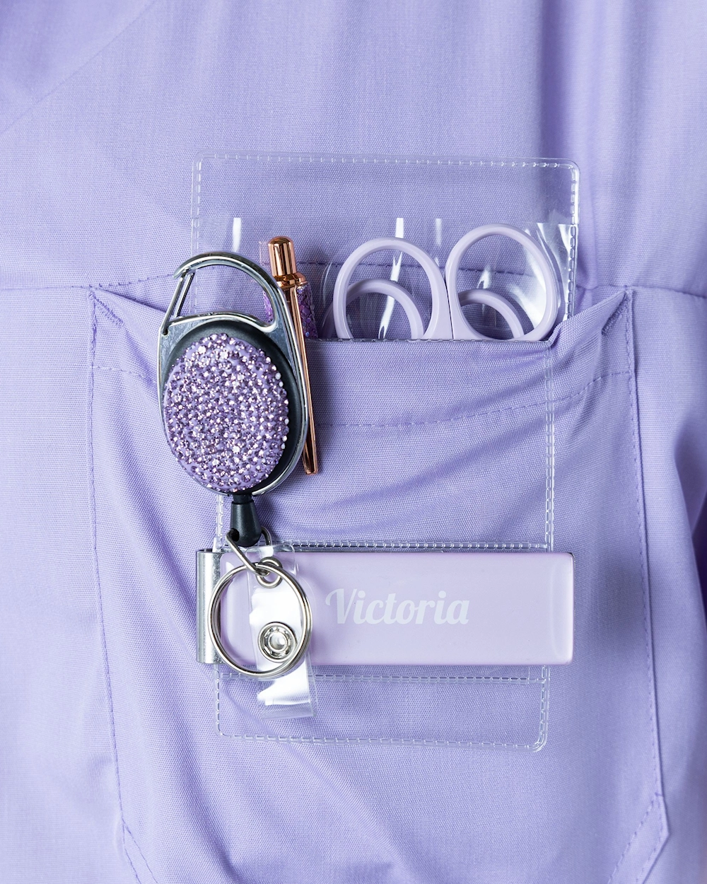 Glitrende kortholder i jojo-modell som lyser opp antrekket ditt. Jojo-holderen hjelper deg med å koble nøkler og ID-kort slik at du alltid har nøkler og kort like ved hånden.