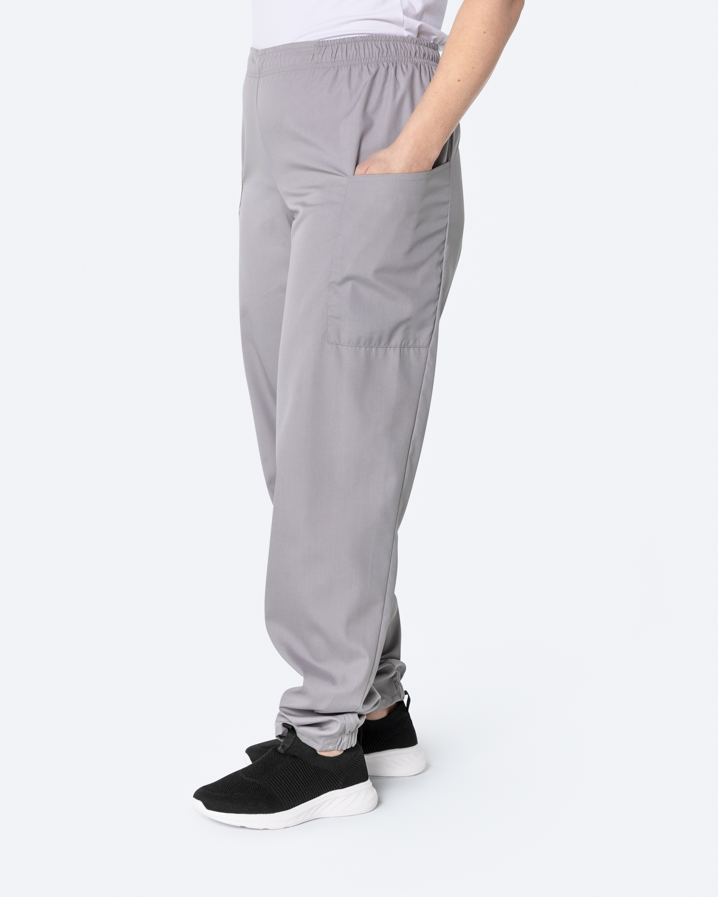 Arbeidsbukse i unisex-modell i et lett og mykt materiale som sitter behagelig mot huden. Buksen har strikk og snøring i midjen samt strikk i benenden for en behagelig passform. Ergonomisk plasserte sidelommer som rommer for eksempel mobiltelefon, notisblokk eller mindre utstyr.