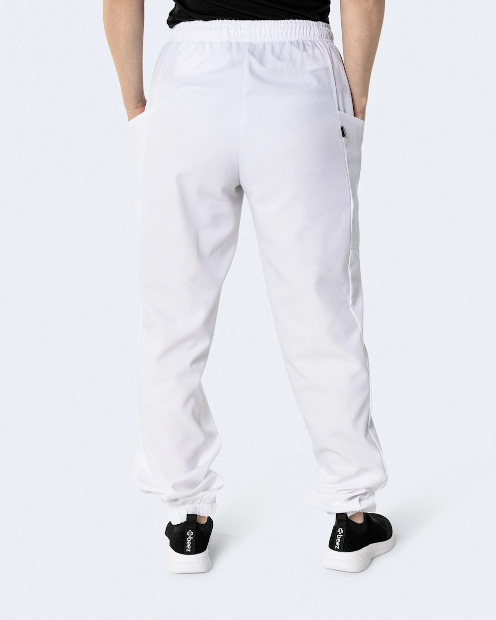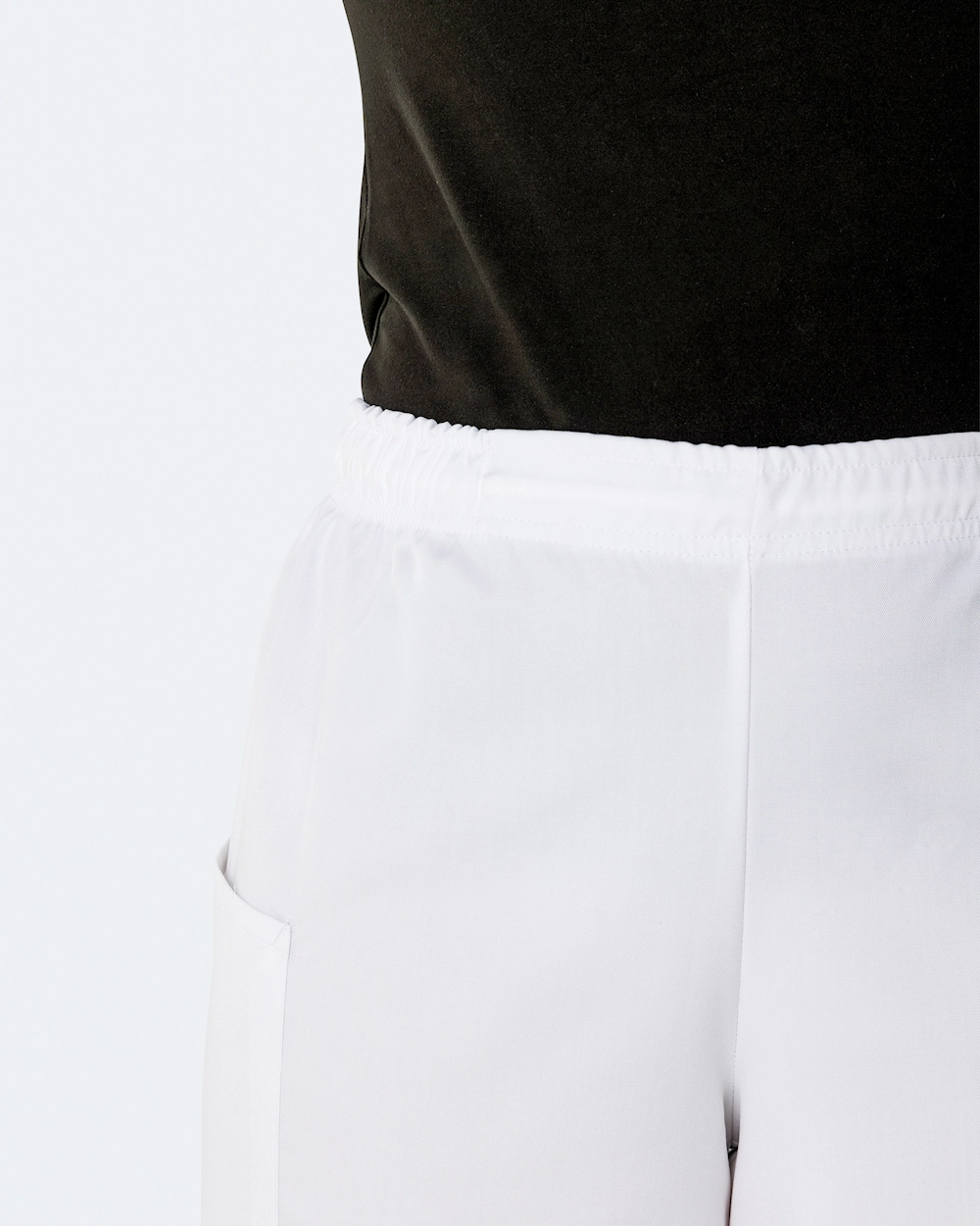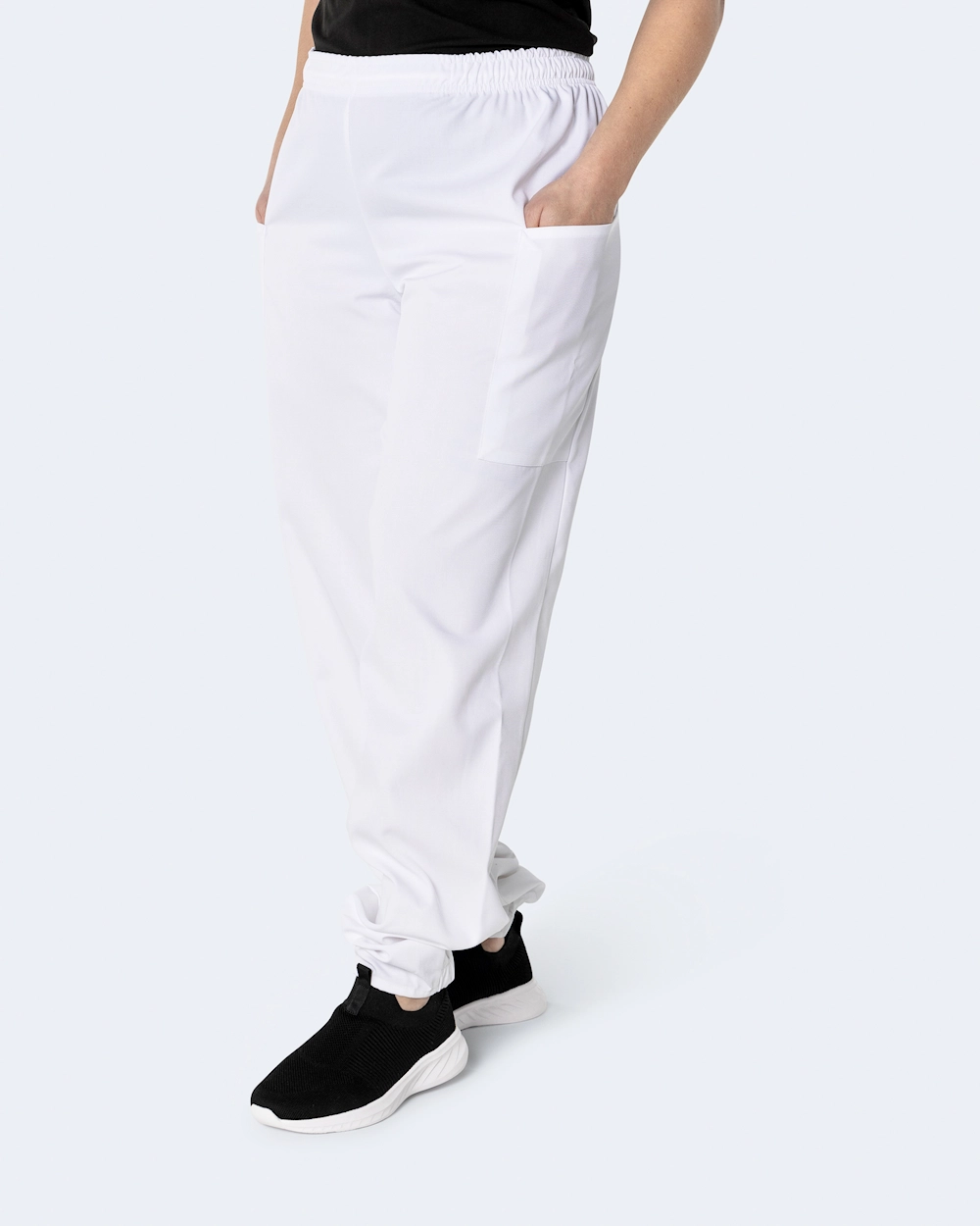 Arbeidsbukse i unisex-modell i et lett og mykt materiale som sitter behagelig mot huden. Buksen har strikk og snøring i midjen samt strikk i benenden for en behagelig passform. Ergonomisk plasserte sidelommer som rommer for eksempel mobiltelefon, notisblokk eller mindre utstyr.