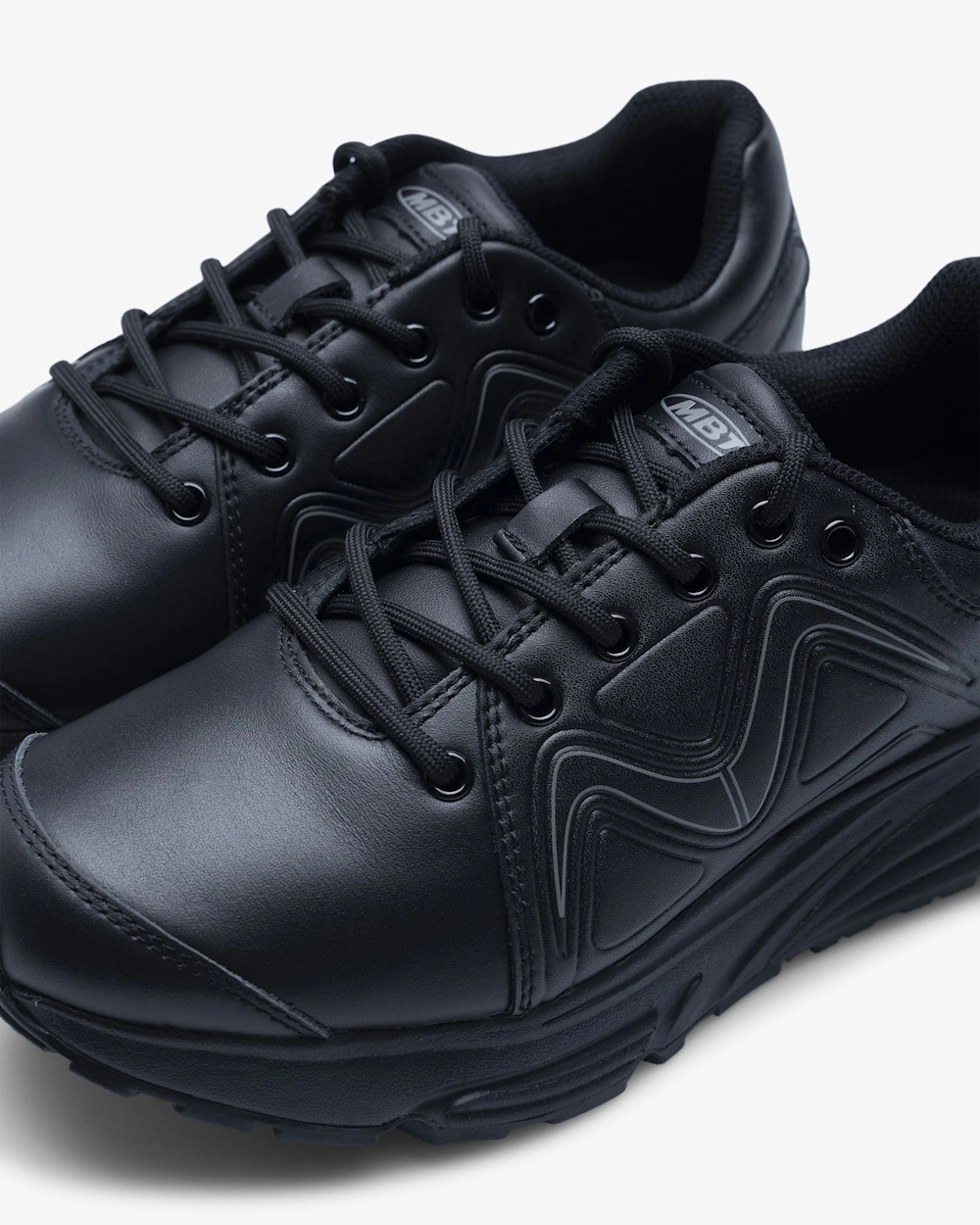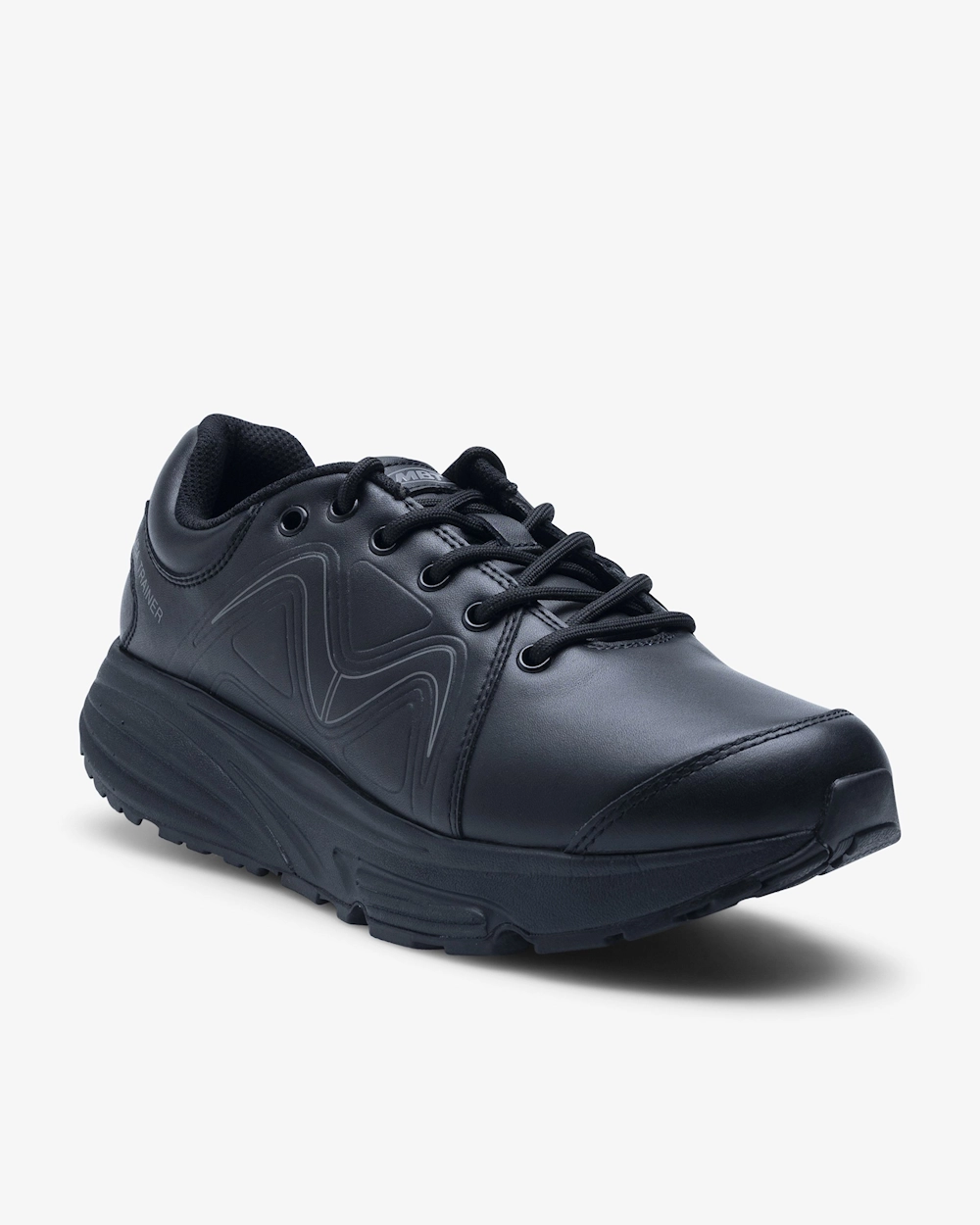 Simba Trainer med en overdel i PU-behandlet mykt skinn, som er beskyttende og enkelt å tørke av. Overdelen har en god passform og er romslig i framfoten. Skoene har uttagbare Ortholite® fotsenger som kan maskinvaskes på 30 grader. Den myke komfortsålen Activate har en lett avrundet såle med høy stabilitet. En behagelig sko for lange dager på jobb. Yttersålen er non-marking. Vi anbefaler å velge en størrelse større enn det du vanligvis bruker, da skoene er litt små i størrelsen.