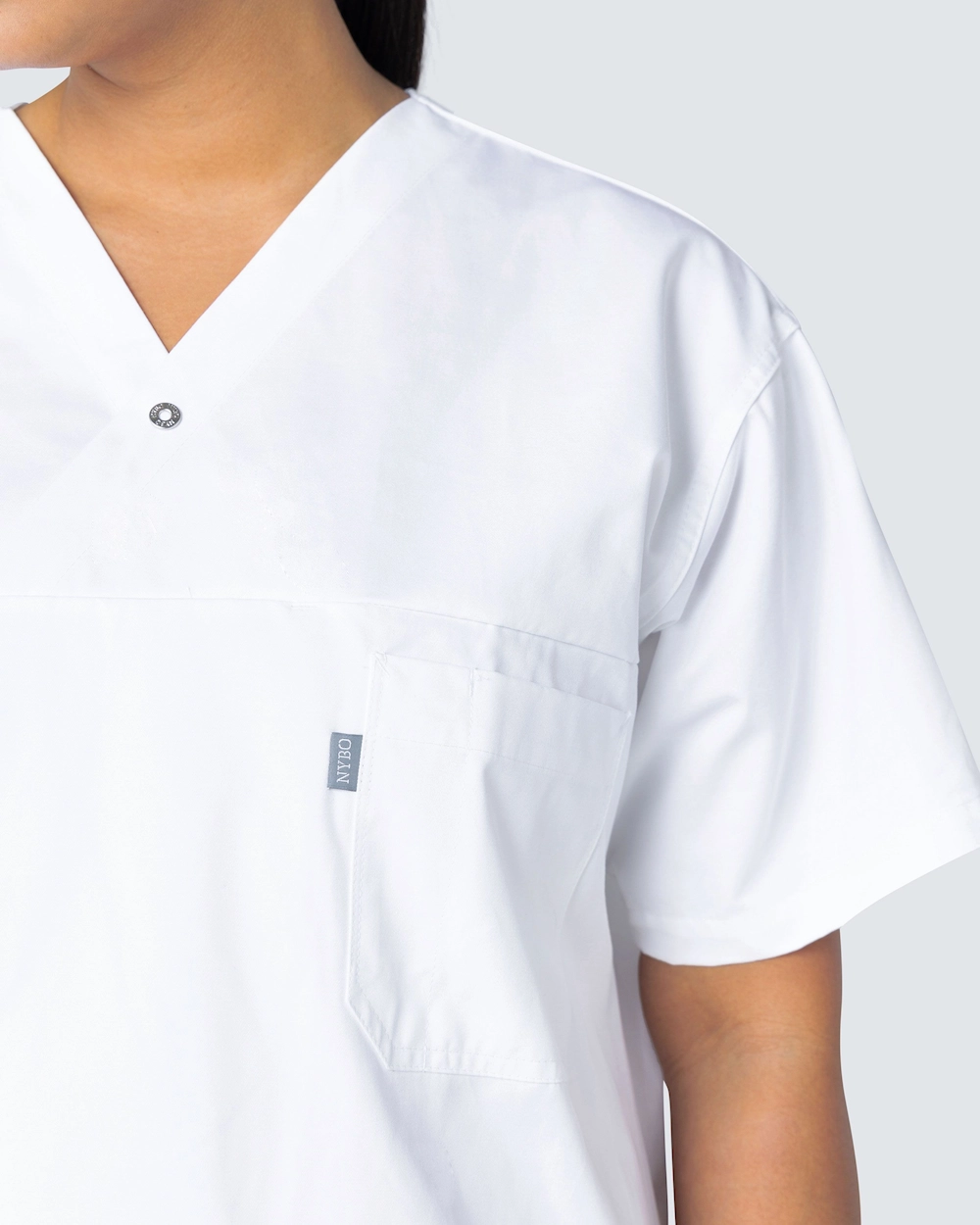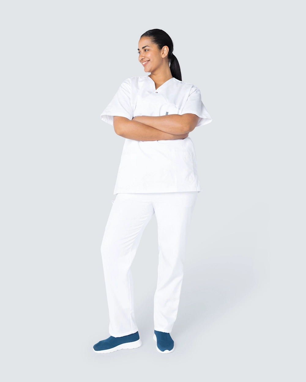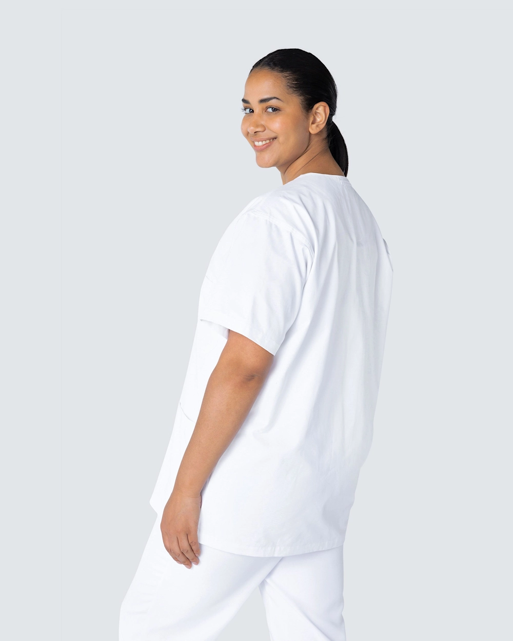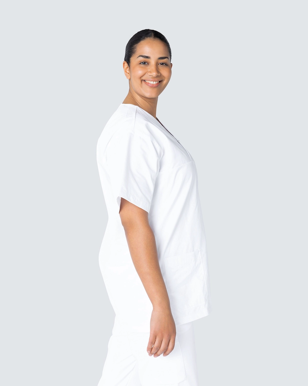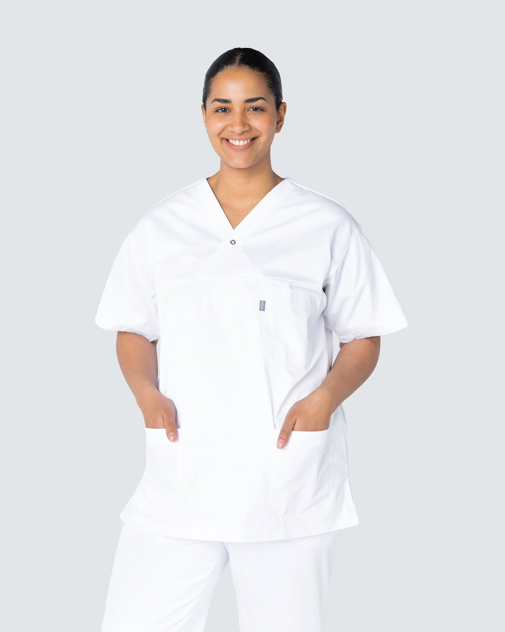 Denne kitlen har et klassisk utseende med v-hals og passer for både menn og kvinner. Tunikaen er i et mykt Twill-materiale med bomull på innsiden, som gir en behagelig følelse. En brystlomme og to hoftelommer gir god plass til arbeidsredskaper.
