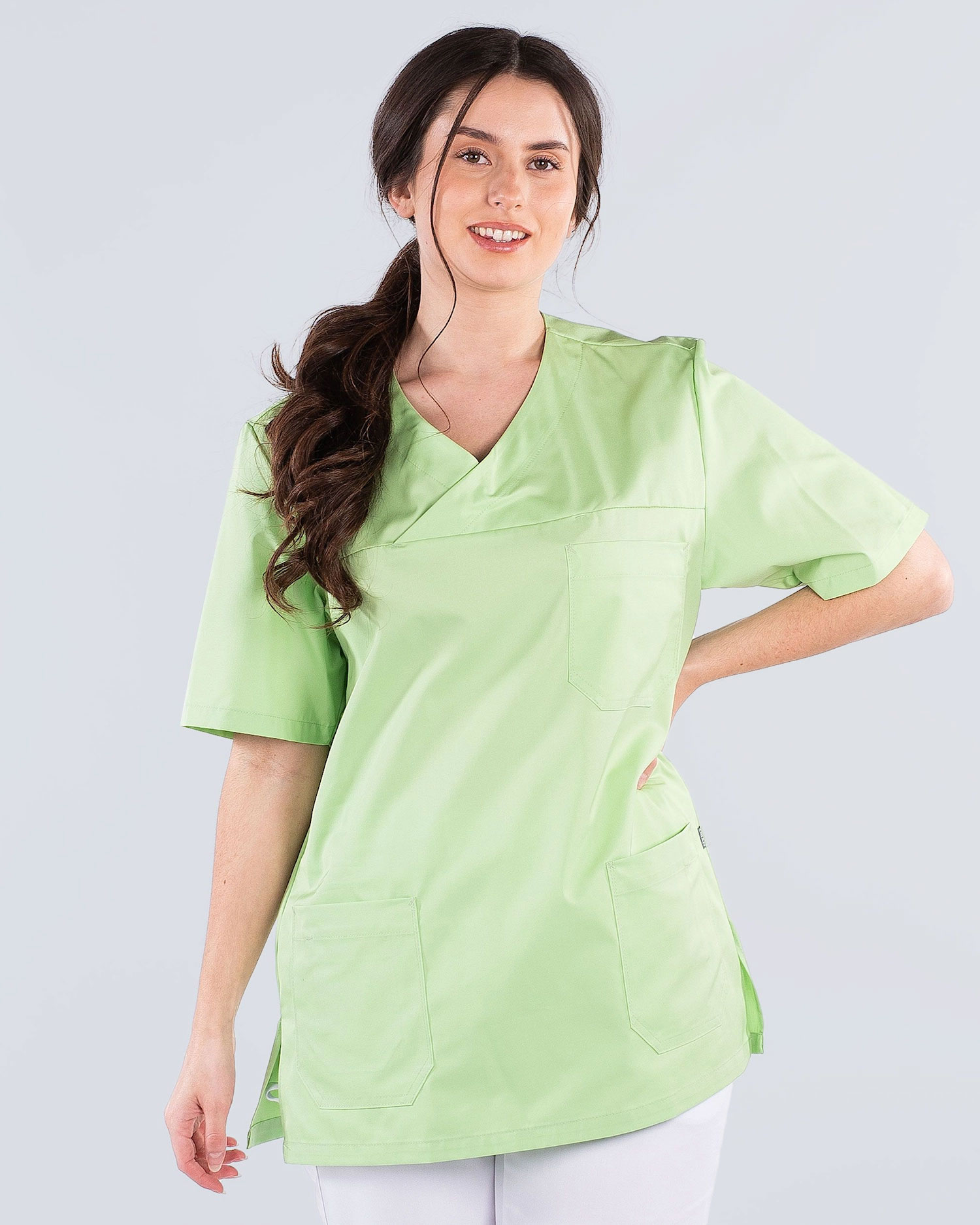 Charisma-kolleksjonen inneholder fargerikt pleietøy med praktiske detaljer som romslige lommer, strikk og lette trykknapper. Plaggene er laget av 50% bomull og 50% polyester og kan vaskes ved 75 ° C.