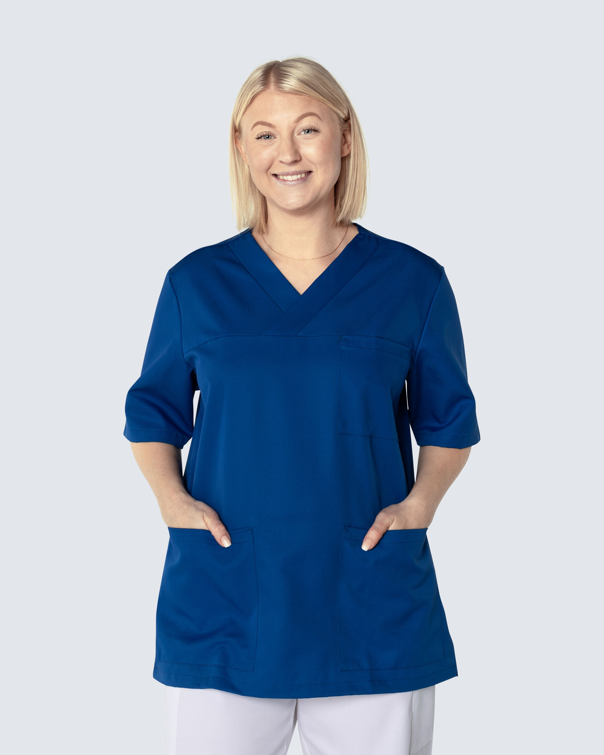 Kittel i unisexmodell med avslappet, romslig passform og et sporty utseende. Plagget har en generøs lengde og splitter i sidene for optimal bevegelsesfrihet. Brystlomme og to romslige hoftelommer, hvorav den ene har en mindre innerlomme til mobiltelefon eller mindre hjelpemidler. Kittelen puster godt og er laget av slitesterkt og temperaturregulerende Tencel, et materiale som sitter behagelig mot kroppen.