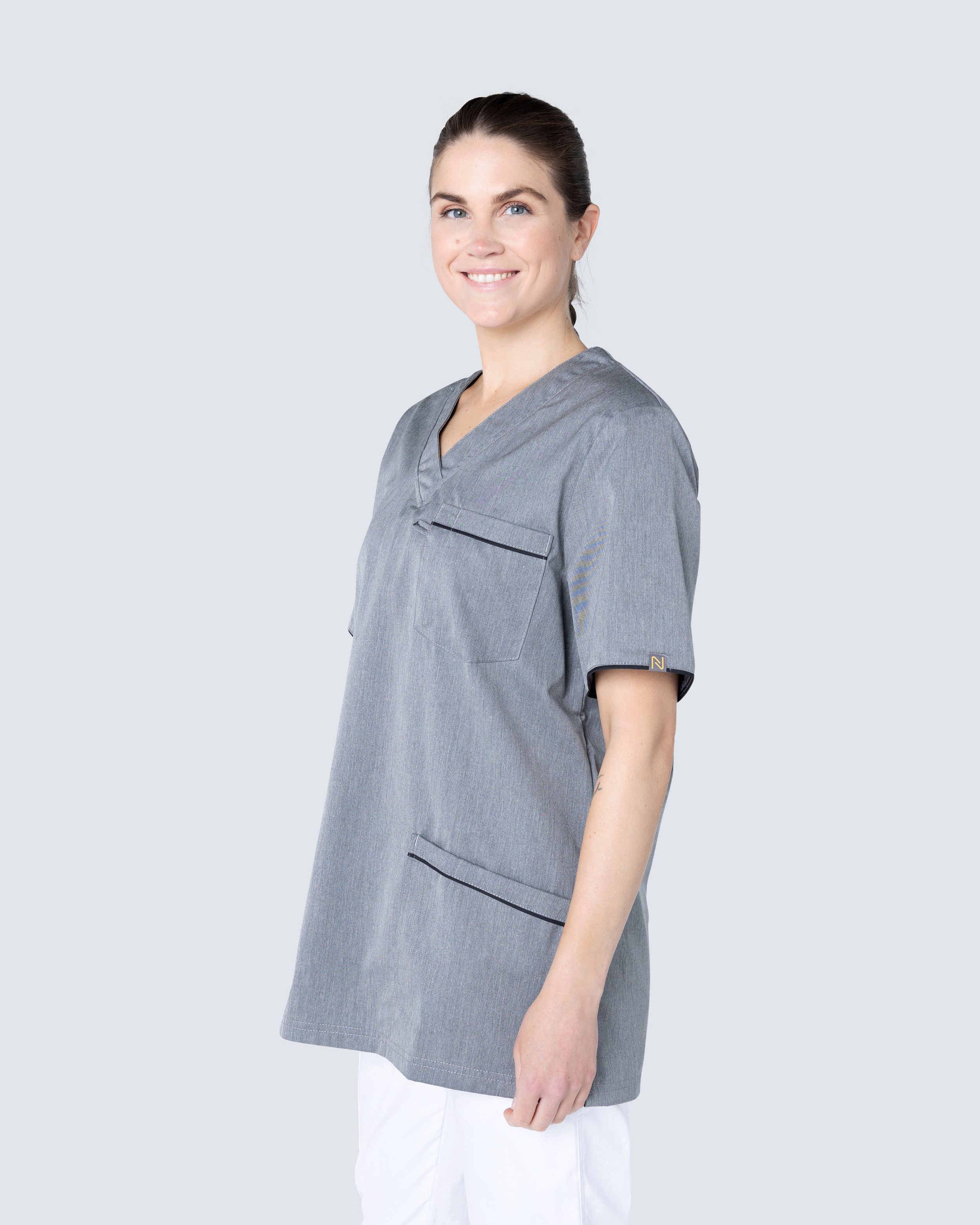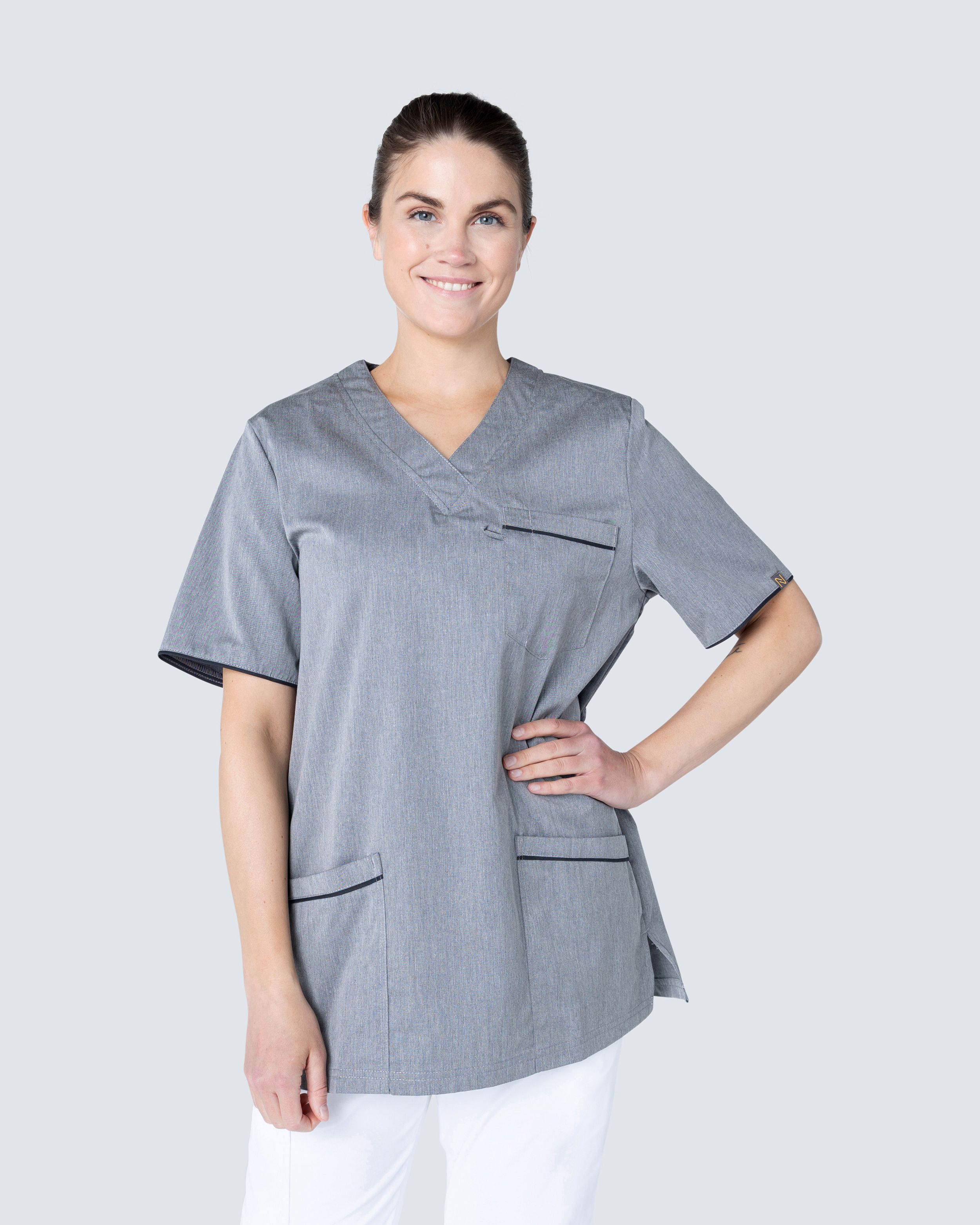 Plaggene i Nytellos Harmony-kolleksjon har en melangestruktur med ensfarget passepoil. Mange funksjonelle detaljer og fokus på passform kjennetegner klærne som er tilvirkede i 50% bomull og 50% polyester. Samtlige plagg vaskes i 60C.