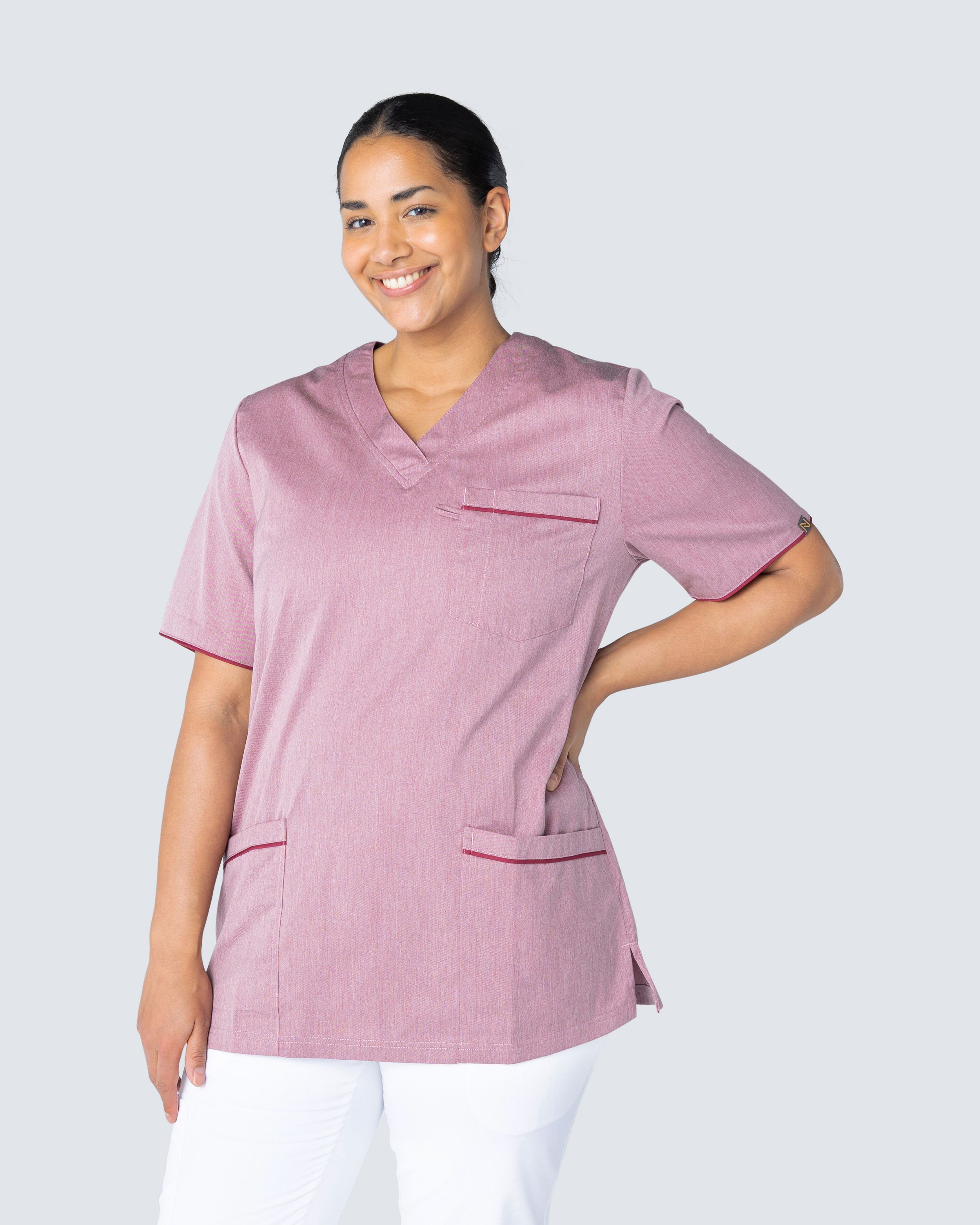 Plaggene i Nytellos Harmony-kolleksjon har en melangestruktur med ensfarget passepoil. Mange funksjonelle detaljer og fokus på passform kjennetegner klærne som er tilvirkede i 50% bomull og 50% polyester. Samtlige plagg vaskes i 60C.