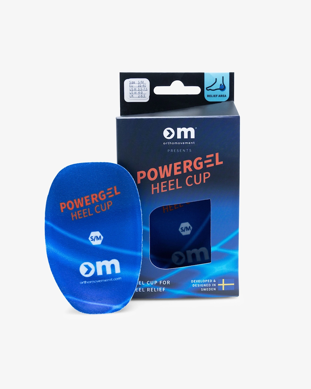 Anatomisk hælstøtte utviklet i henhold til Ortho Movement-teknologi som effektivt beskytter hælen mot støt. Hælstøtten er 2,5 cm høy og fremmer fotens naturlige funksjon, avlaster kroppen og fordeler trykket i skoen. Beskyttelsen på toppen er laget av hudfølsomt materiale for å minimere risikoen for blemmer og gnagsår. Dersom hælstøtten blir skitten eller mister sin klebrige overflate, kan den vaskes med lunkent vann og mild såpe.