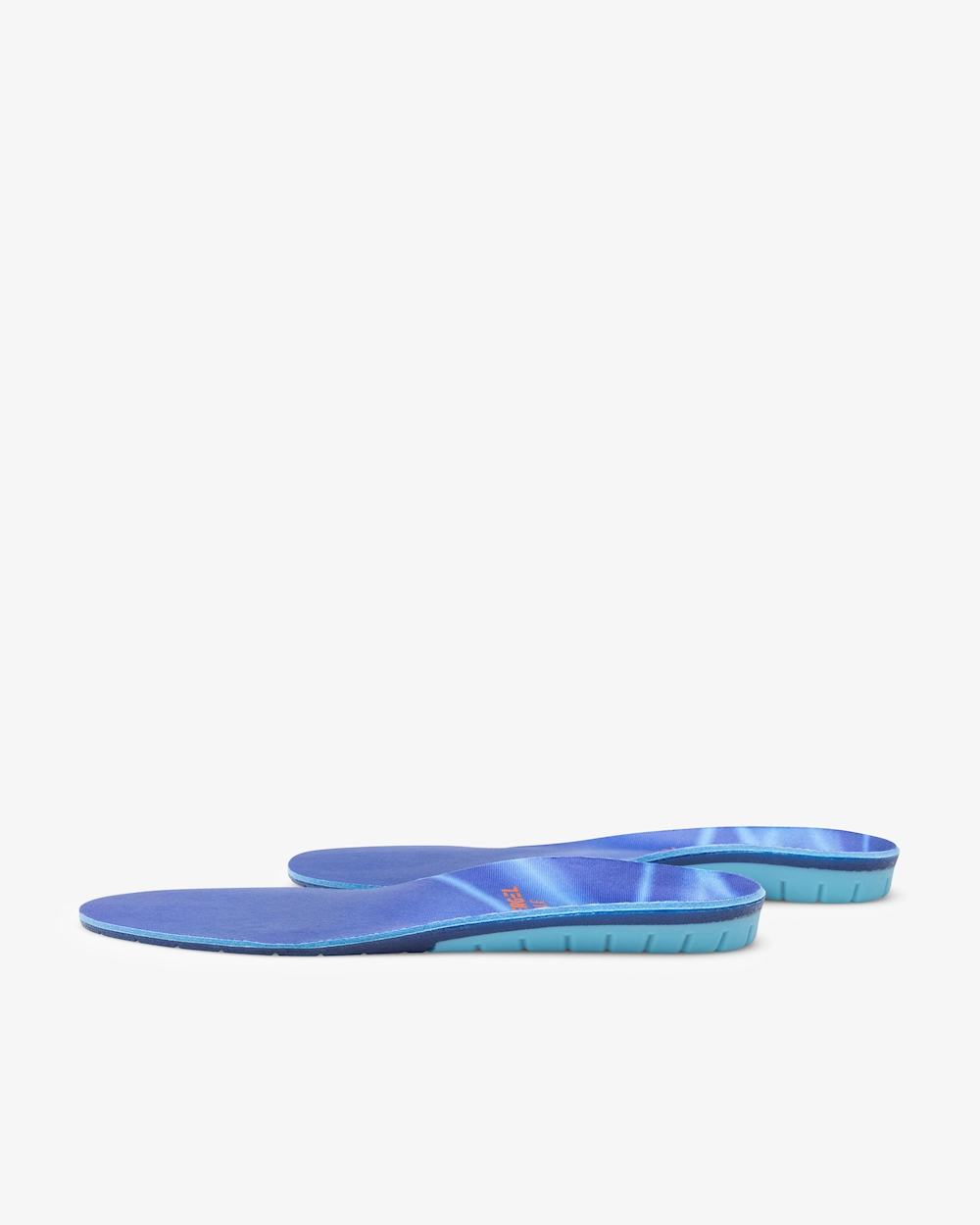 Det dynamiske systemet består av buestøttedesignet, se det lyseblå materialet som fungerer sammen med den mørkeblå strømmen under. Dette skaper Powergel Insole, en dynamisk såle som er perfekt for daglig bruk, mens du trener og går og står på jobb med høy slitestyrke, avlastning og støtdemping.