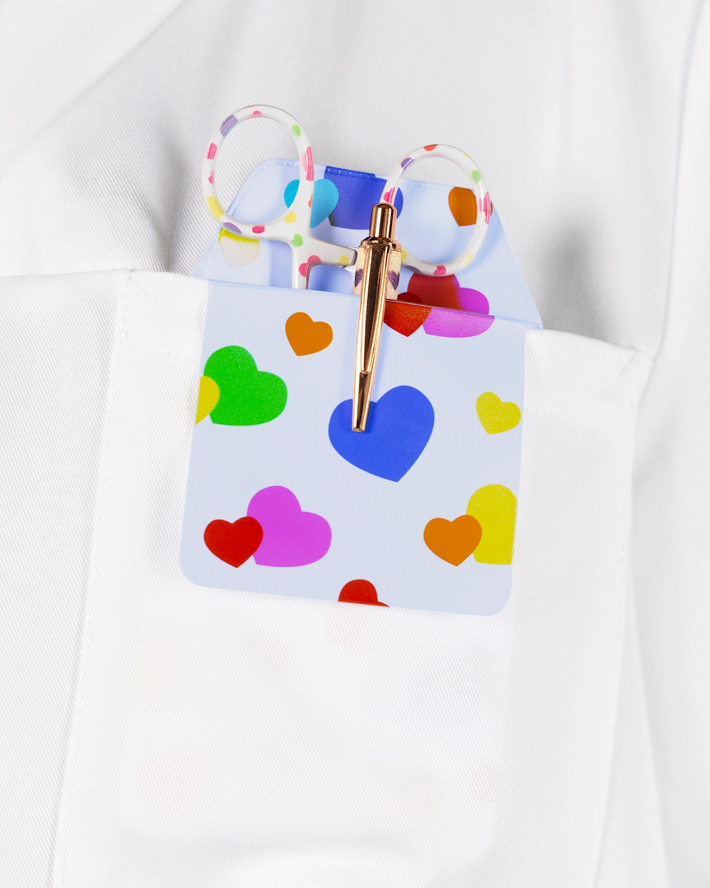 Den hjerteprydede pennelommen er en stilig og praktisk løsning for penner på jobben. Den nye, slitesterke designen beskytter mot blekklekkasje og har et moderne hjertemønster som uttrykker personlighet, uten at det går på bekostning av kvaliteten. Perfekt for helsepersonell som ønsker både funksjon og stil.
