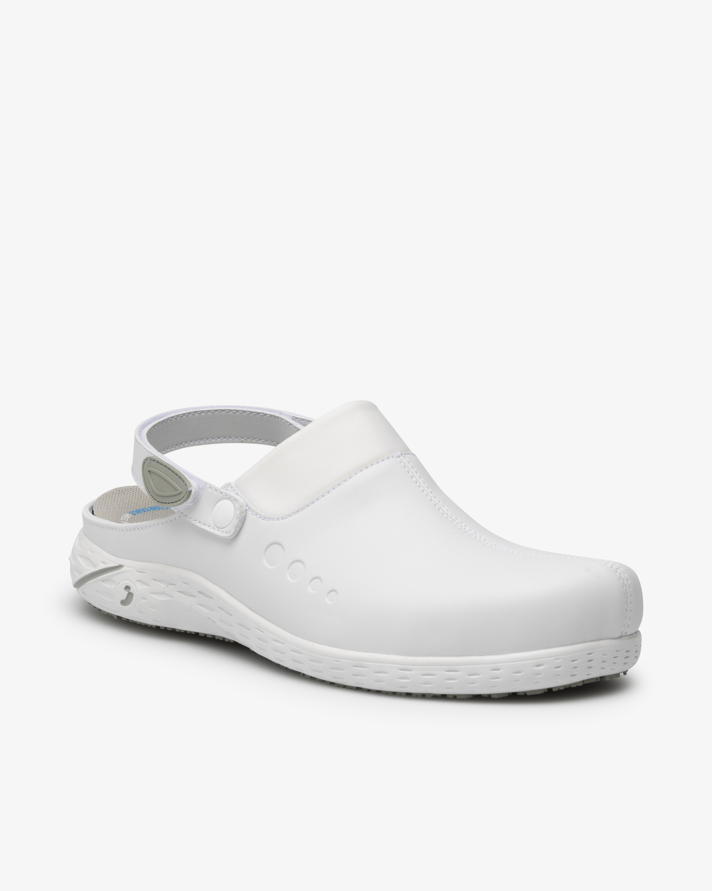 Komfortable og trygge clogs er det perfekte valget for helsepersonell som setter pris både på komfort og funksjonalitet. Disse slip-in-skoene har ESD-beskyttelse, noe som reduserer risikoen for antennelse på grunn av statisk elektrisitet. Den utskiftbare innersålen gjør det enkelt å tilpasse skoene til ditt personlige behov. Den sklisikre gummisålen gir utmerket grep både på vått og tørt underlag. I tillegg har de en overdel som puster, noe som gir effektiv temperatur- og fuktkontroll og holder føttene friske hele arbeidsdagen.