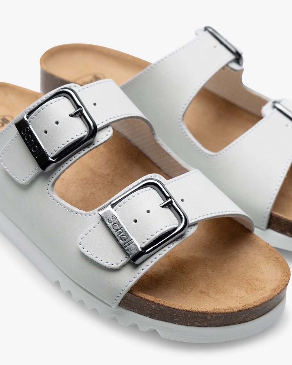 Arbeidssandal med anatomisk utformet fotseng med Bioprint Adapta-teknologi, som følger fotens form og gir ekstra støtte til fotbuen. Dette bidrar til naturlig gange, jevn vektfordeling og lindring og forebygging av smerter i knær, hofter og skuldre. Scholl Malaren Low har lav dropp og egner seg godt til lange arbeidsdager på føttene. To remmer med metallspenner gir mulighet for justerbar passform.
