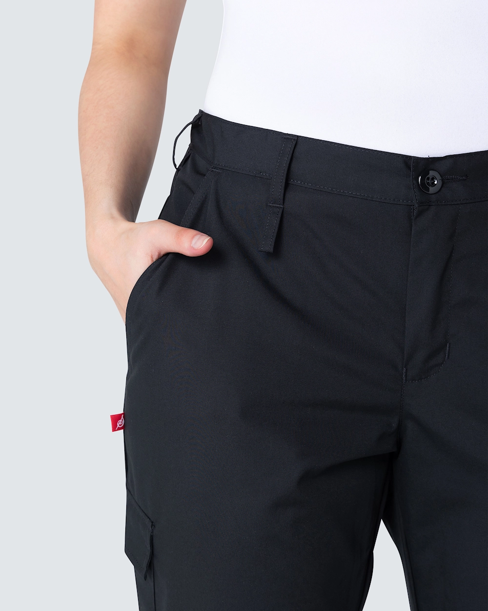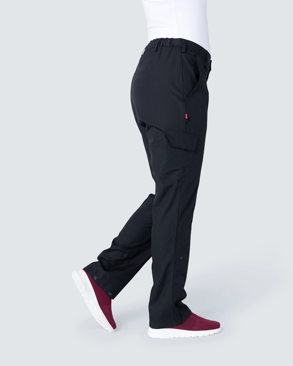 Om dette plagget Den her buksen fra Segers har trykknapper og hemper for reglering av benlengde.