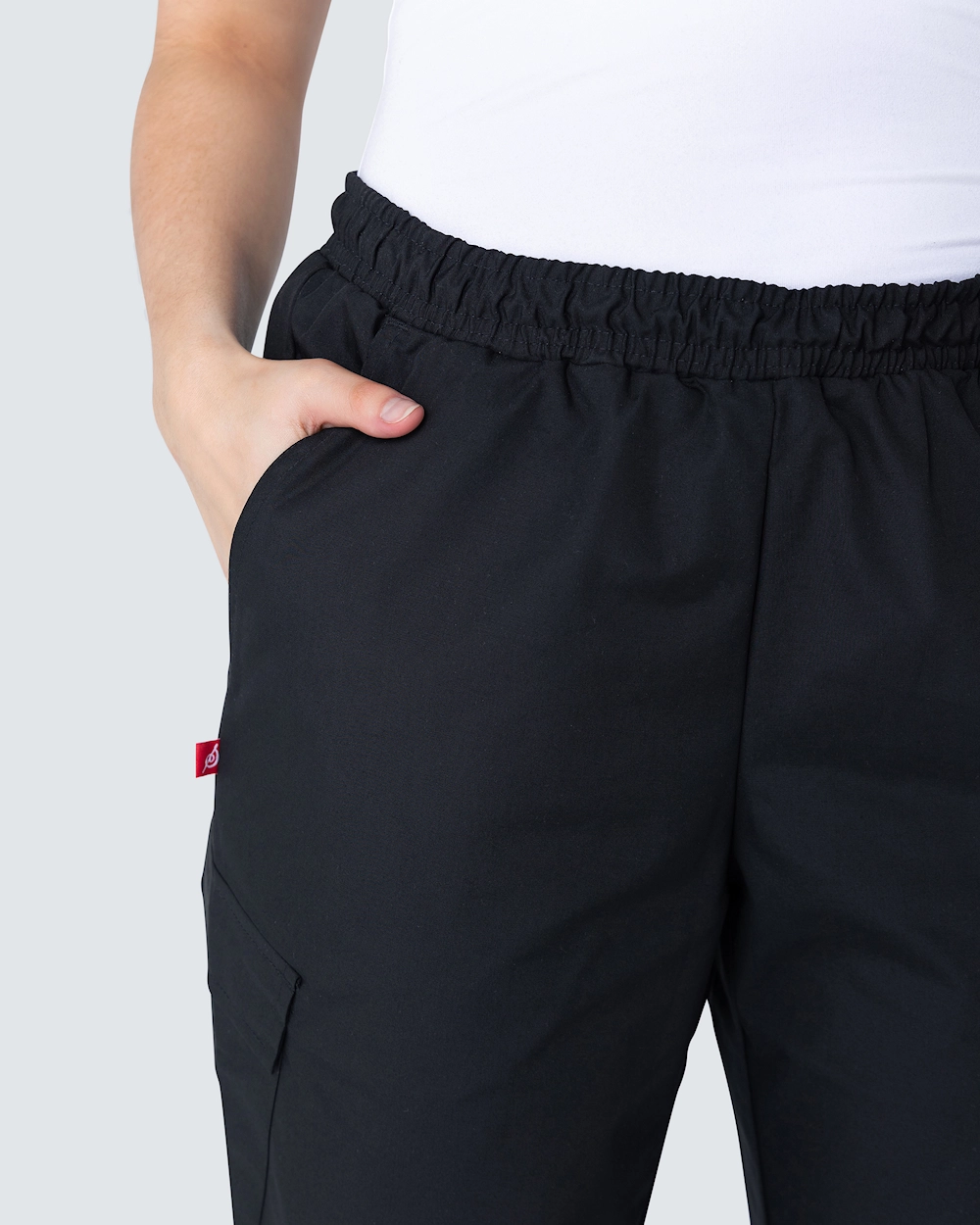 Segers elastiske bukser har flere praktiske lommer for alt utstyr og hjelpemidlene som trengs i helsevesenet. To dype skrålommer foran, en benlomme på skrå med lokk på høyre ben og en dobbellomme på venstre ben - begge med nedstikking for penner. Buksen er laget av 50% bomull og 50% polyester for å gi deg best mulig kvalitet, komfort og holdbarhet.