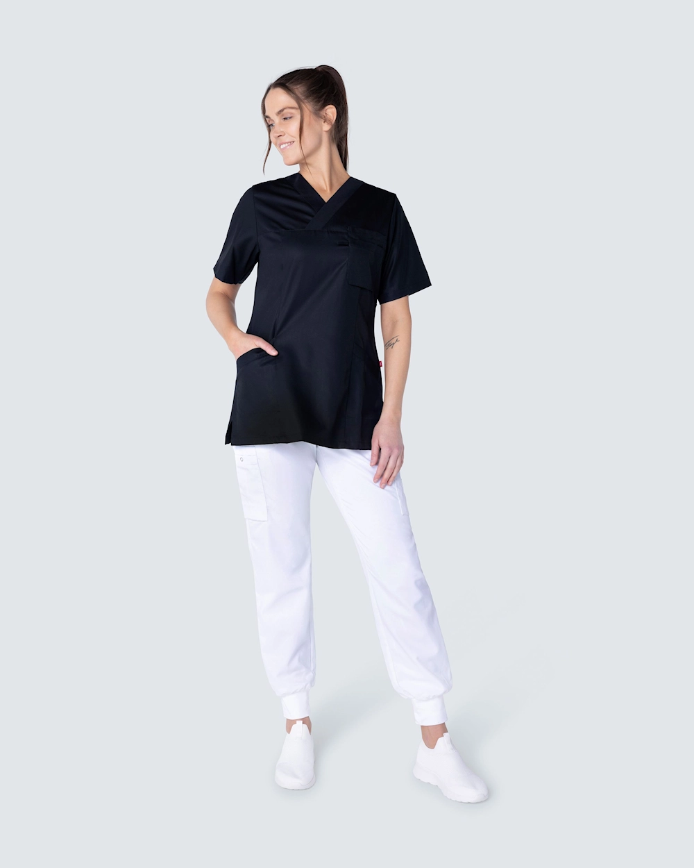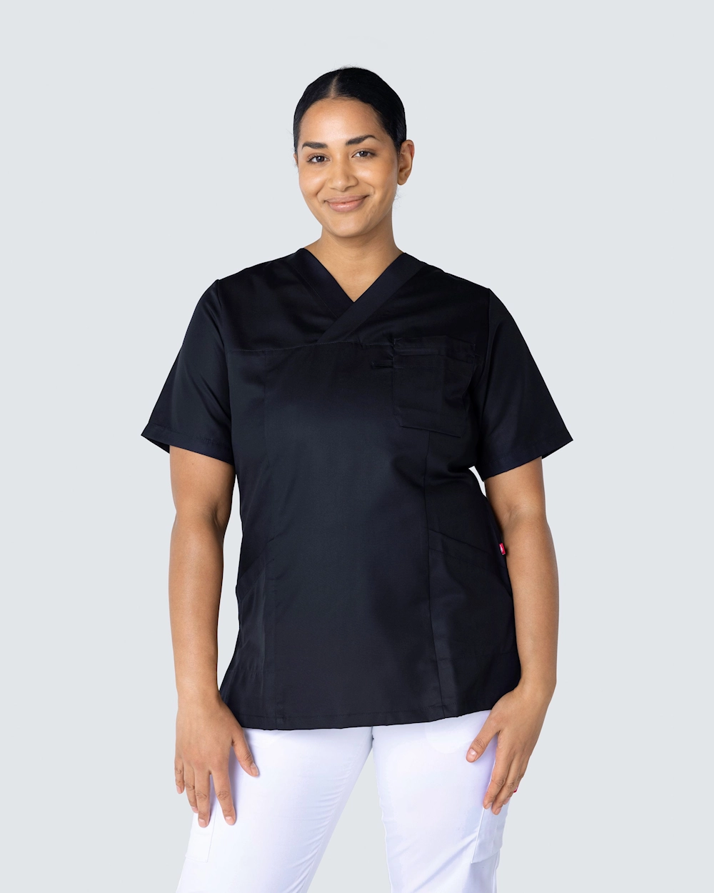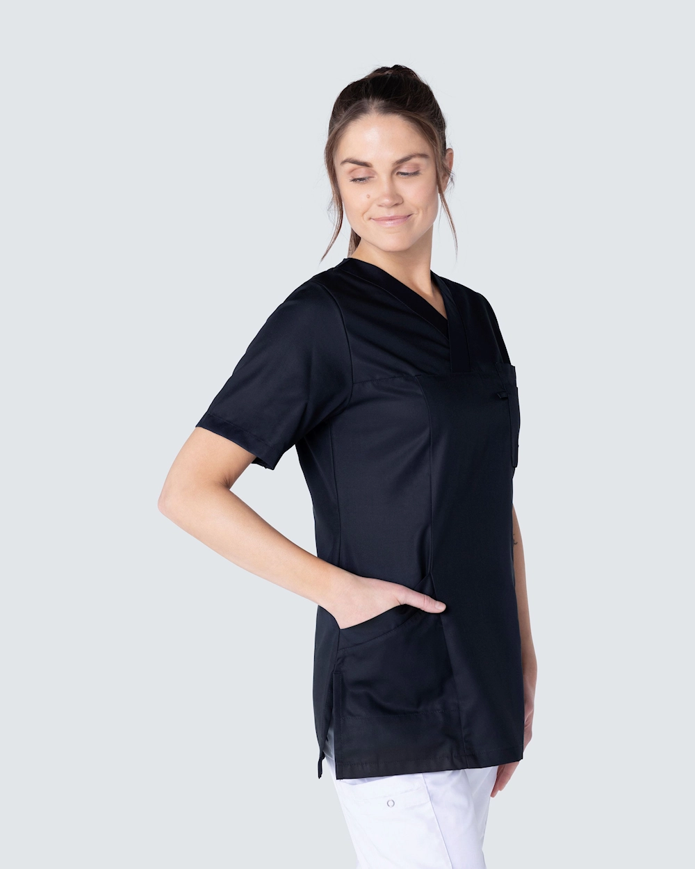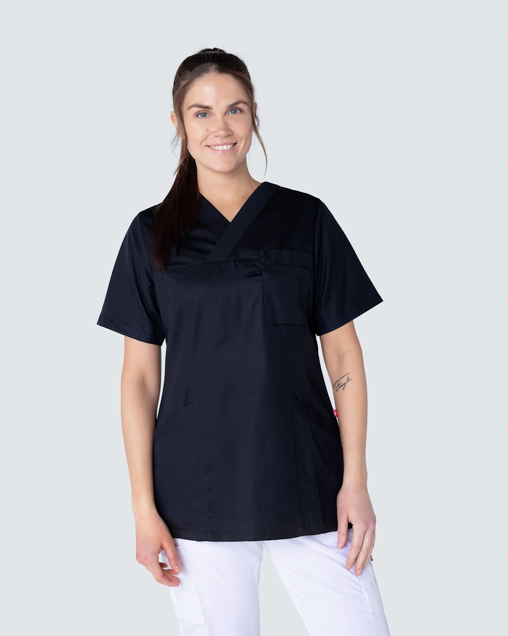 Denne arbeidstunikaen er laget av miljøvennlig Tencel som gir en lett og behagelig følelse på kroppen og puster godt - perfekt for deg som helsepersonell med lange og varme arbeidsøkter. Tunikaen har to sidelommer med nøkkelhank og telefonlomme samt brystlomme. Med v-hals og lett skreddersydd får plagget en fin passform.
