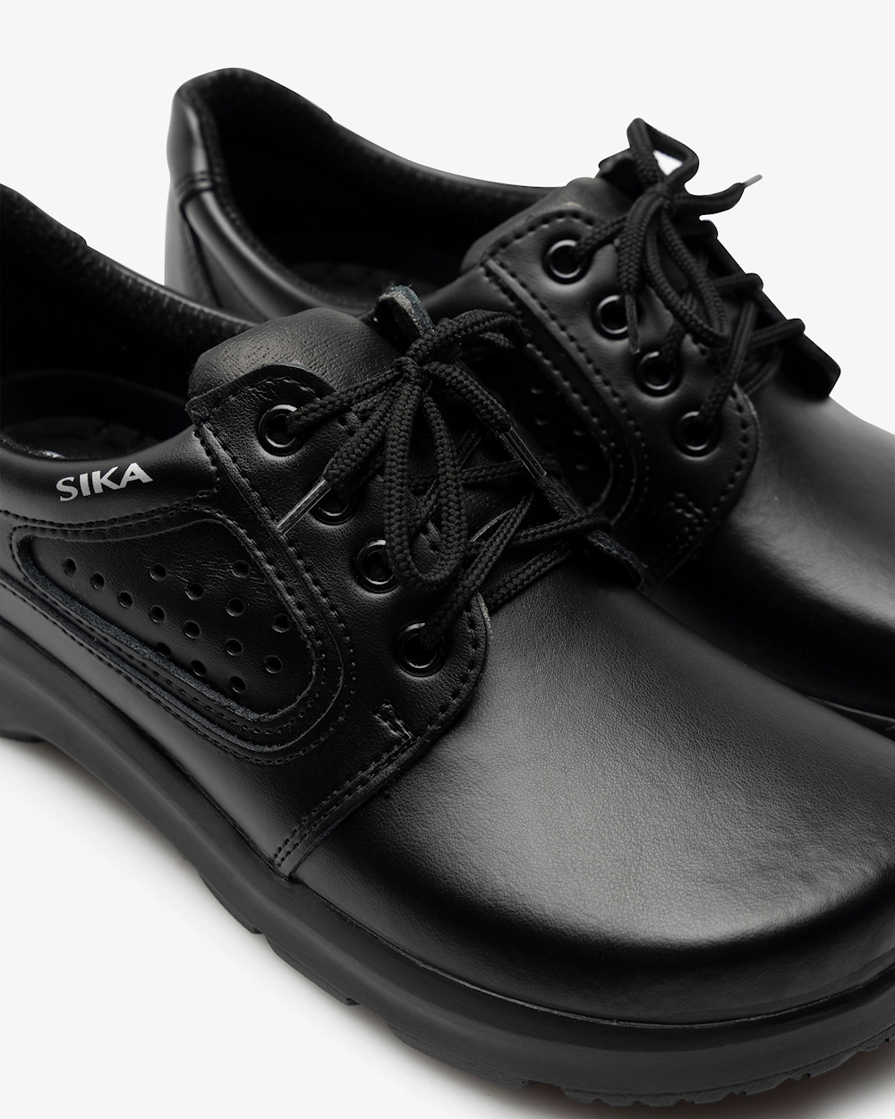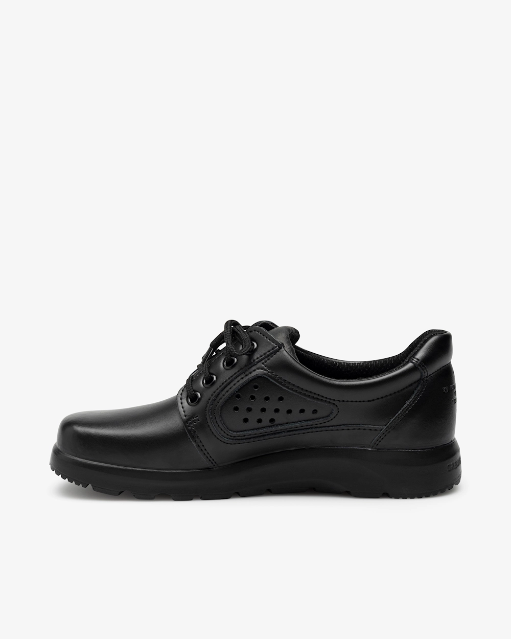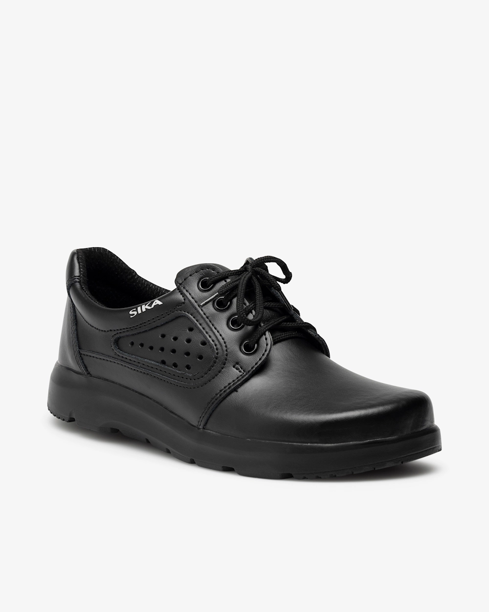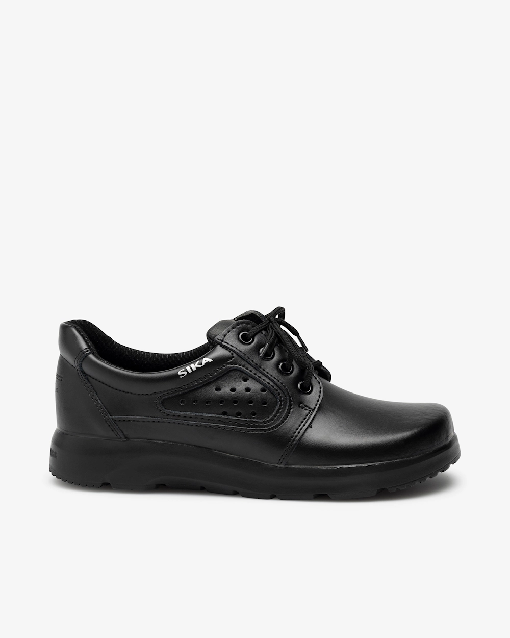 Slitesterke arbeidssko i Permair®-skinn som kombinerer slitestyrke og funksjonalitet. Den sklisikre og støtdempende yttersålen i PU sørger for sikkerhet og komfort ved lange arbeidsdager. Den vannbestandige overdelen in skinn med perforeringer sørger for god pusteevne og holder føttene friske og tørre. Den vaskbare innersålen i antibakterielt materiale bidrar til optimal hygiene. Perfekt for helsepersonell som både er ute etter kvalitet og personlig stil.
