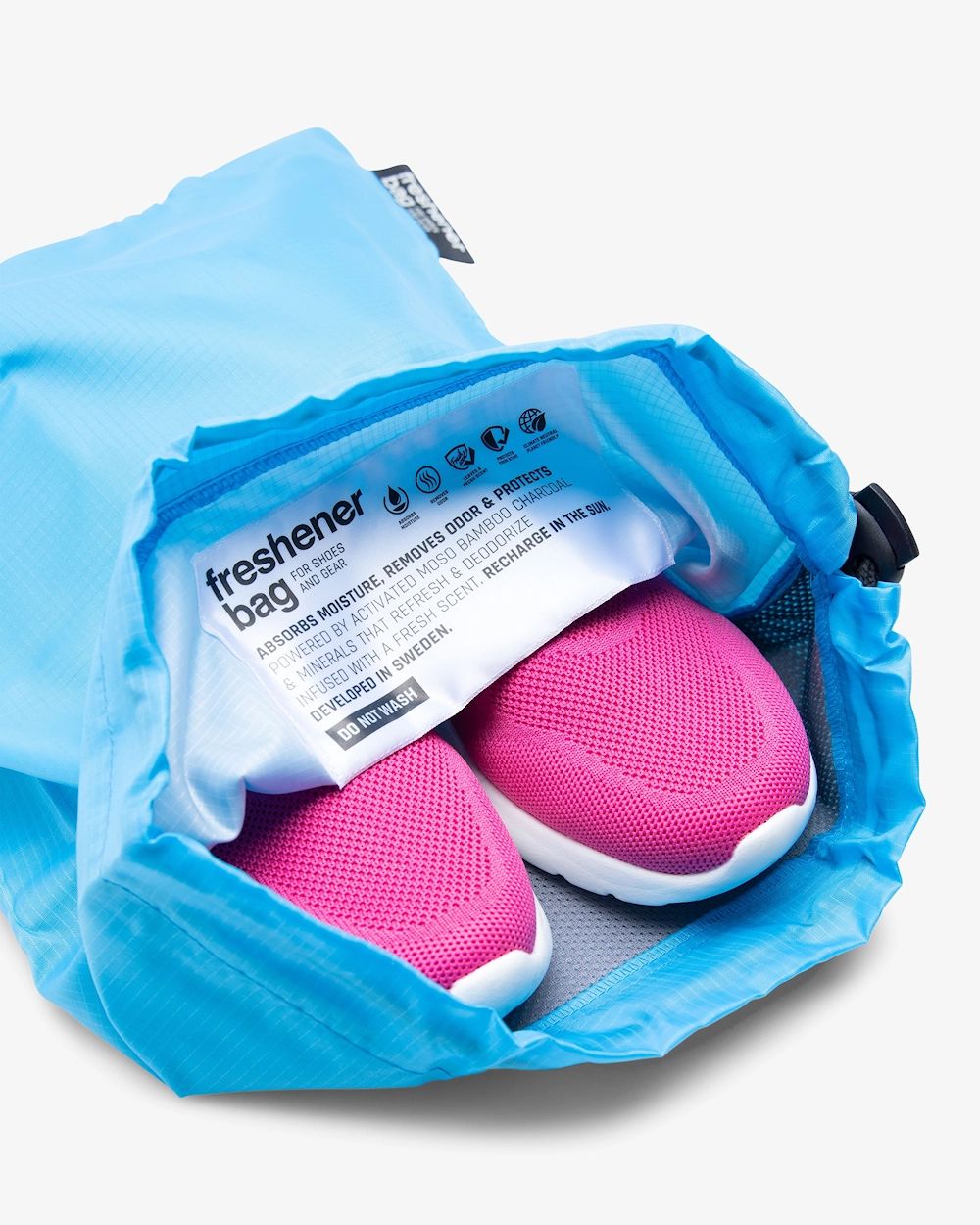 Smellwell Freshener Bag er en funksjonell treningsbag som effektivt absorberer fukt, nøytraliserer og motvirker vond lukt og forhindrer bakteriedannelse. Bagen kan for eksempel brukes for oppbevaring av treningsklær og sko, som lett kan avgi uønsket lukt. Smellwell Freshener Bag har full fukt- og luktabsorberingsevner i opptil 2 år, men beholder sin funksjon også etter det. Vreng bagen og la den stå i solen noen ganger i året for å gjenvinne effekten.