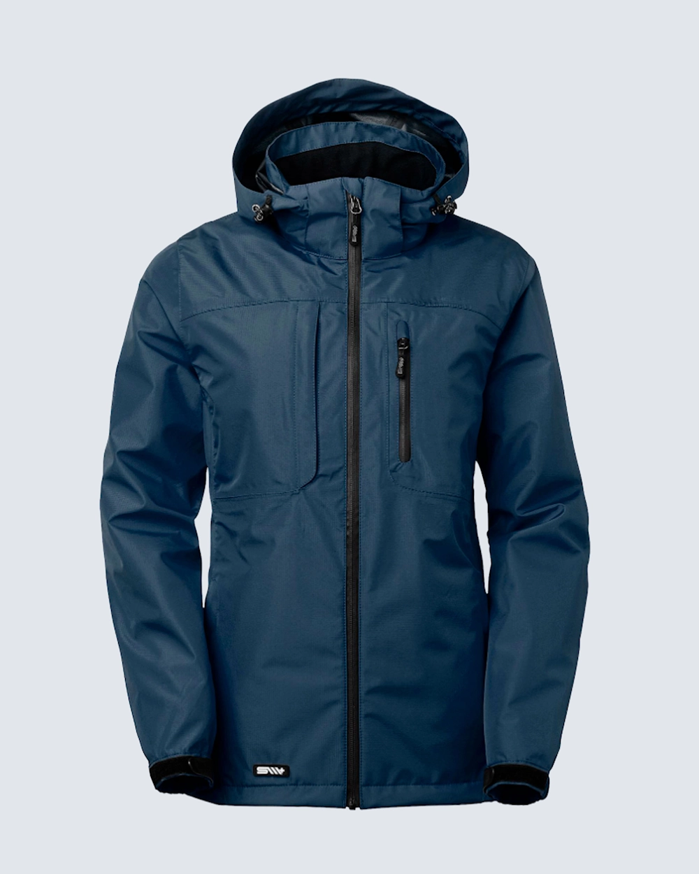 Praktisk og allsidig vind- og vanntett skalljakke i polyester ripstop-materiale, noe som er et materiale med forsterkede tråder i rutemønster som gjør stoffet både sterkt og minsker risikoen for at det revner. Fin damepassform og stilige lommedetaljer. Teipede sømmer. Gummimerker i nedrekant. Justerbar og avtagbar hette. Gummiklaffer med logo for justering av ermer.