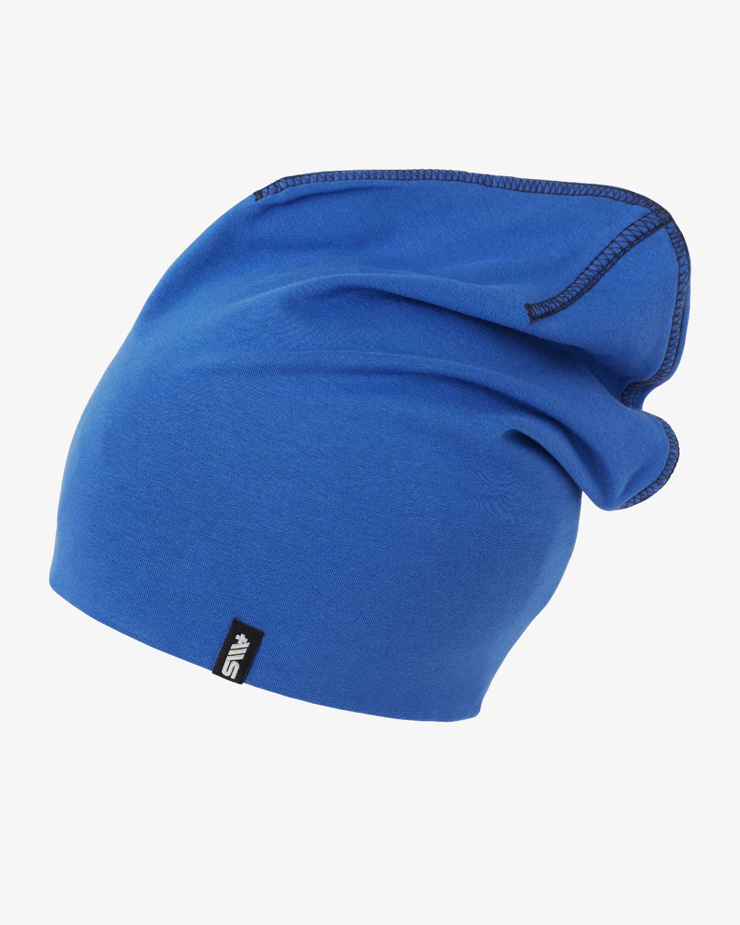 Myk og varm lue for kjølige dager. Flatlocksømmer i kontrastfarger.