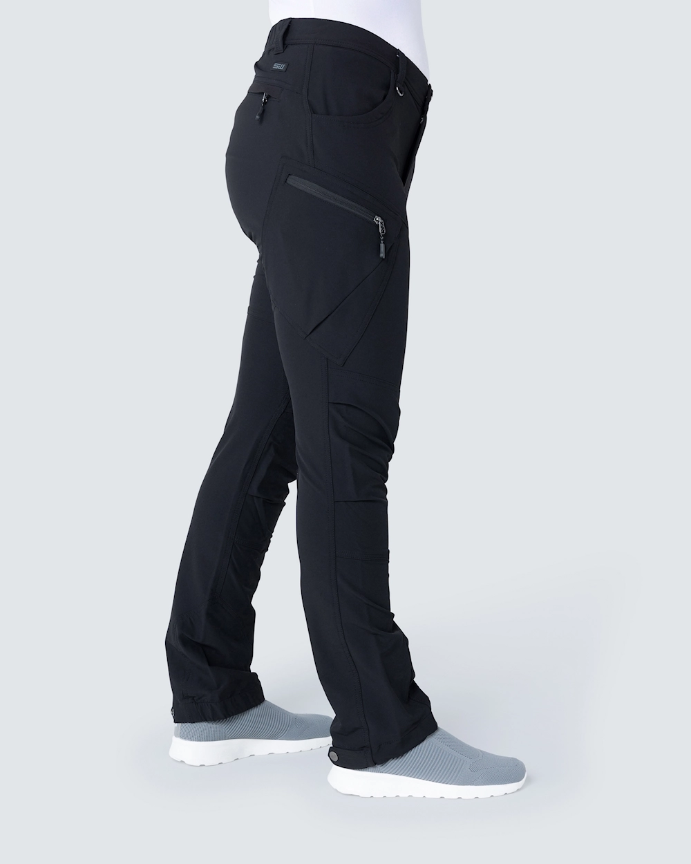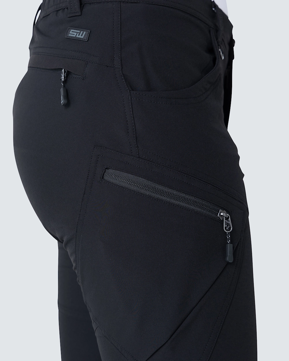 Praktiske 5-ficks stretchy stretch breeches for optimal bevegelsesfrihet og komfort. Benlommer og baklomme har glidelåser utstyrt med glidelås i refleks. Knapper nederst på foten for fotkontroll. SW gummi etikett tilbake på ok.