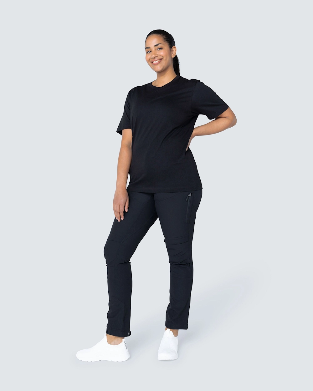 Modellen er 178 cm høy og bruker størrelse L