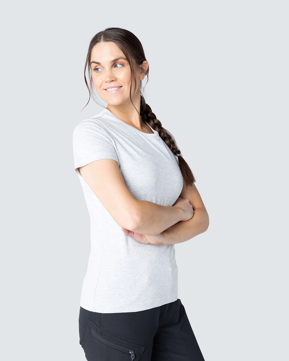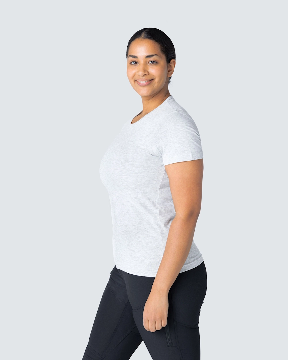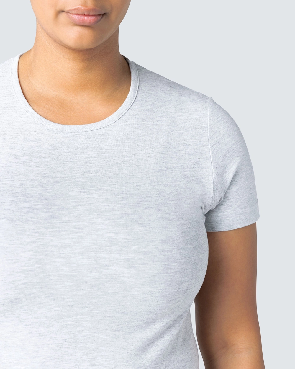 T-skjorte i silikonvasket single jersey. Figursydd dame-passform med rund hals