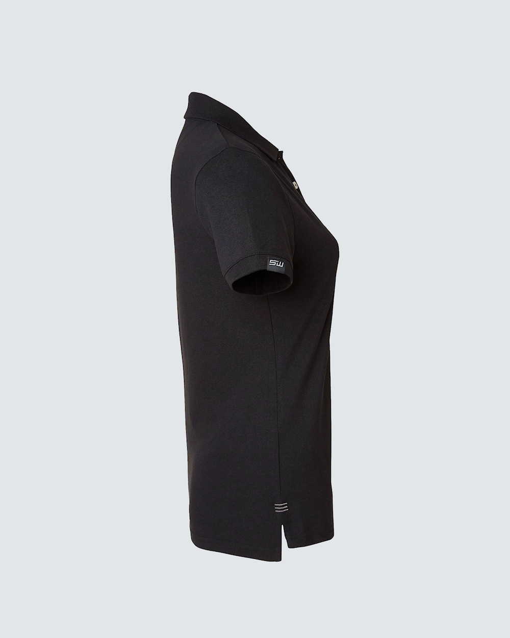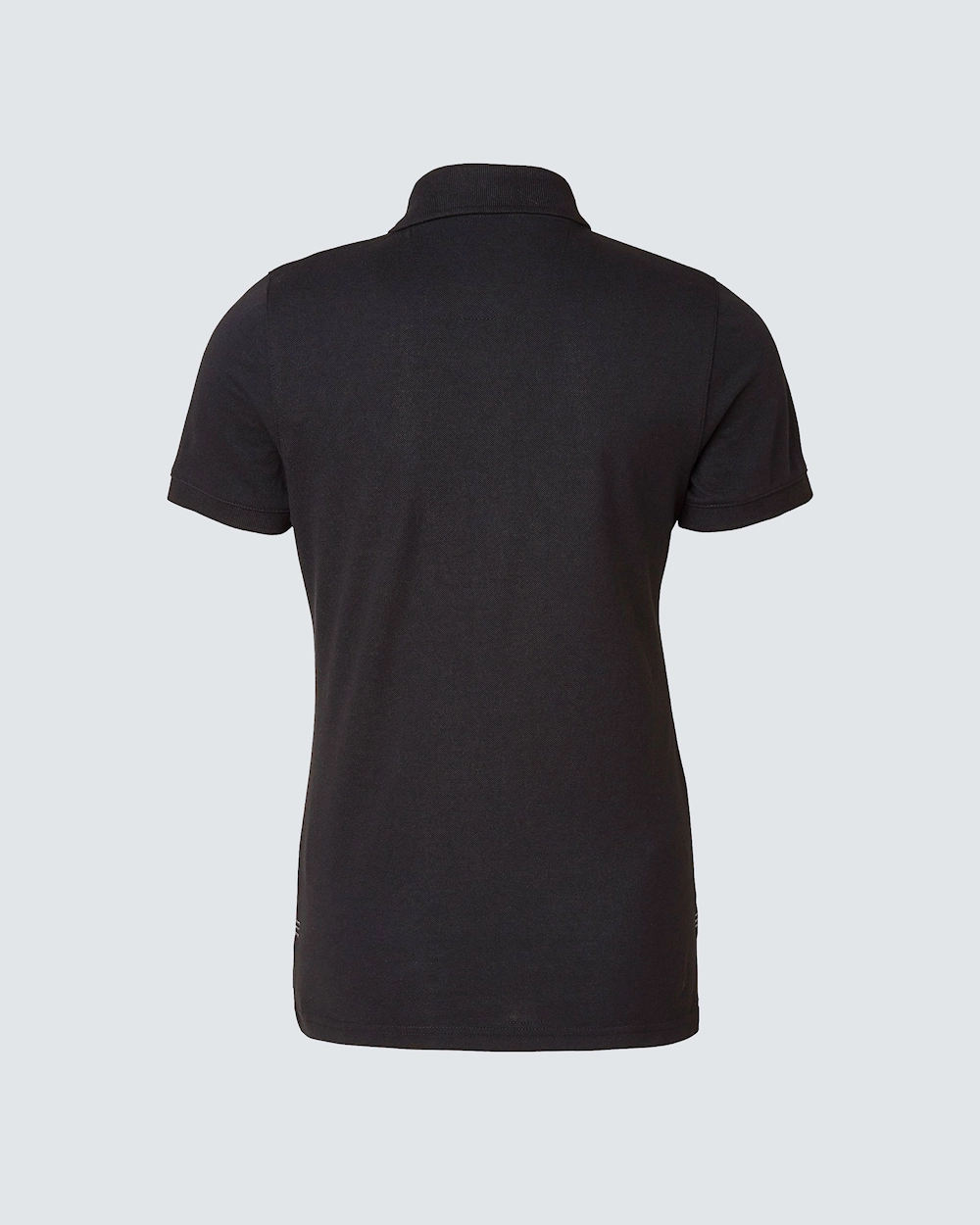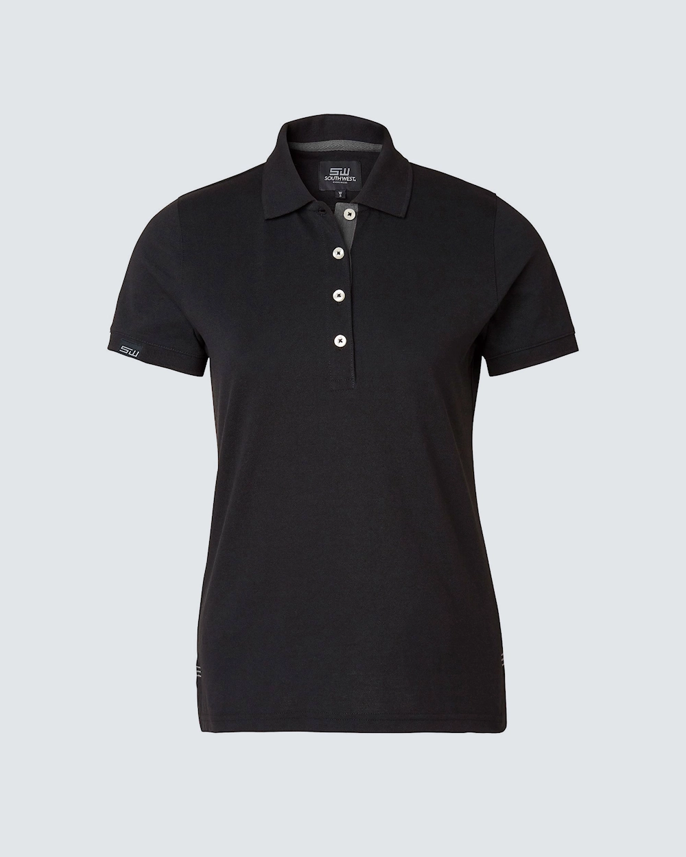 Piké i dame passform med knappestolpe i kontrasterende farge og hvite knapper. Lang knappestolpe for feminin look. Forsterkede sømmer. Kontrastfarge i nakke og brodert ved splitt. Ribbestrikket krave og mansjetter.