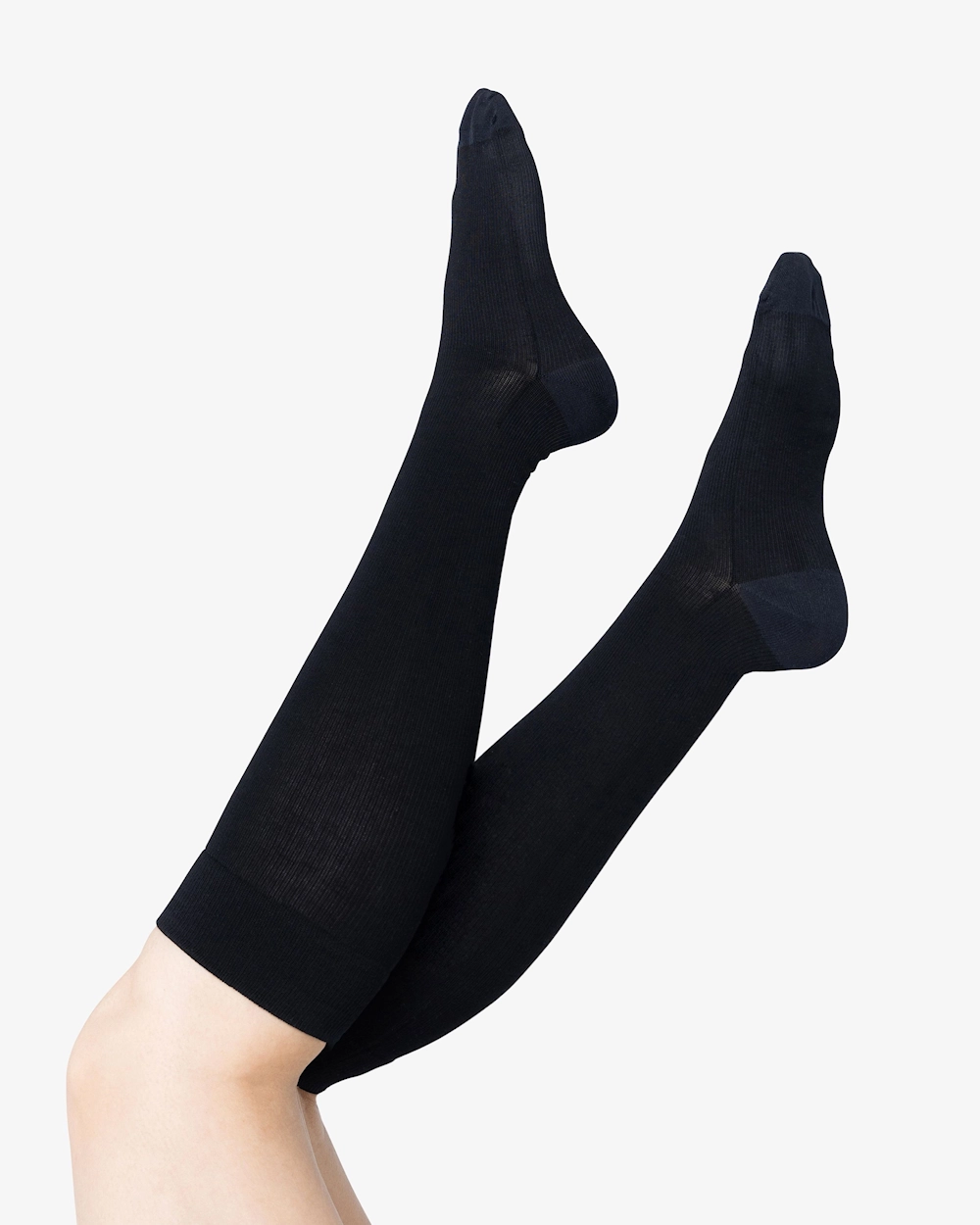 Komfortabel støttestrømpe i premiumkvalitet som gir behagelig støtte til slitne ben. Gradert kompresjon fra ankelen og oppover. Strømpen stimulerer blodgjennomstrømningen, forebygger hevelser og bidrar til økt blodsirkulasjon. Bruk av støttestrømper kan også forebygge åreknuter og blodpropp. Denne støttestrømpen har et bredere leggmål og er ca. 4–5 cm bredere over leggen og ca. 2 cm bredere over ankelen. Anatomisk formet fot og forsterket hæl og tå.