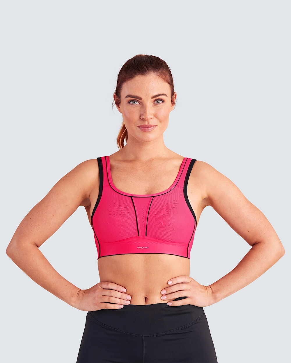 Swegmark Movement sports-BH gir ekstrem støtte med sitt COOLMAX-materiale, noe som sikrer mykhet og komfort gjennom hele arbeidsdagen.