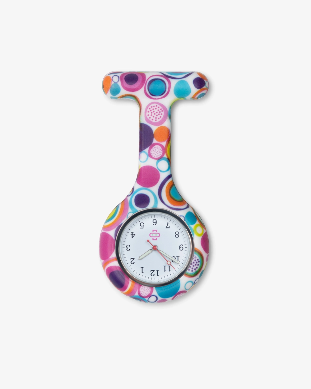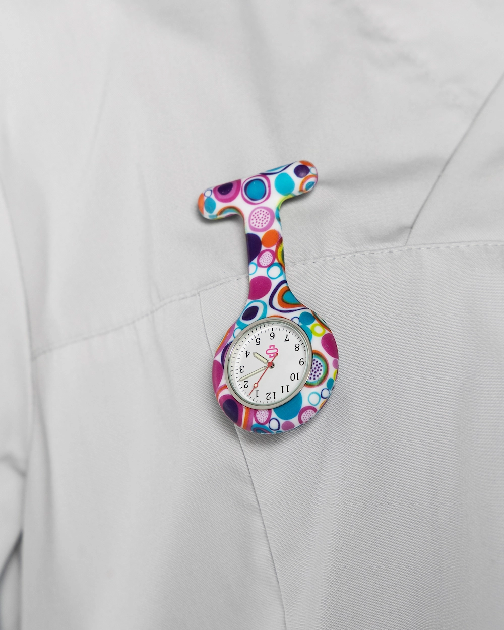 Sykepleierklokken Color Vibe er både funksjonell og en fargerik detalj på arbeidsantrekket. Batteri følger med, så du kan bruke det med en gang!