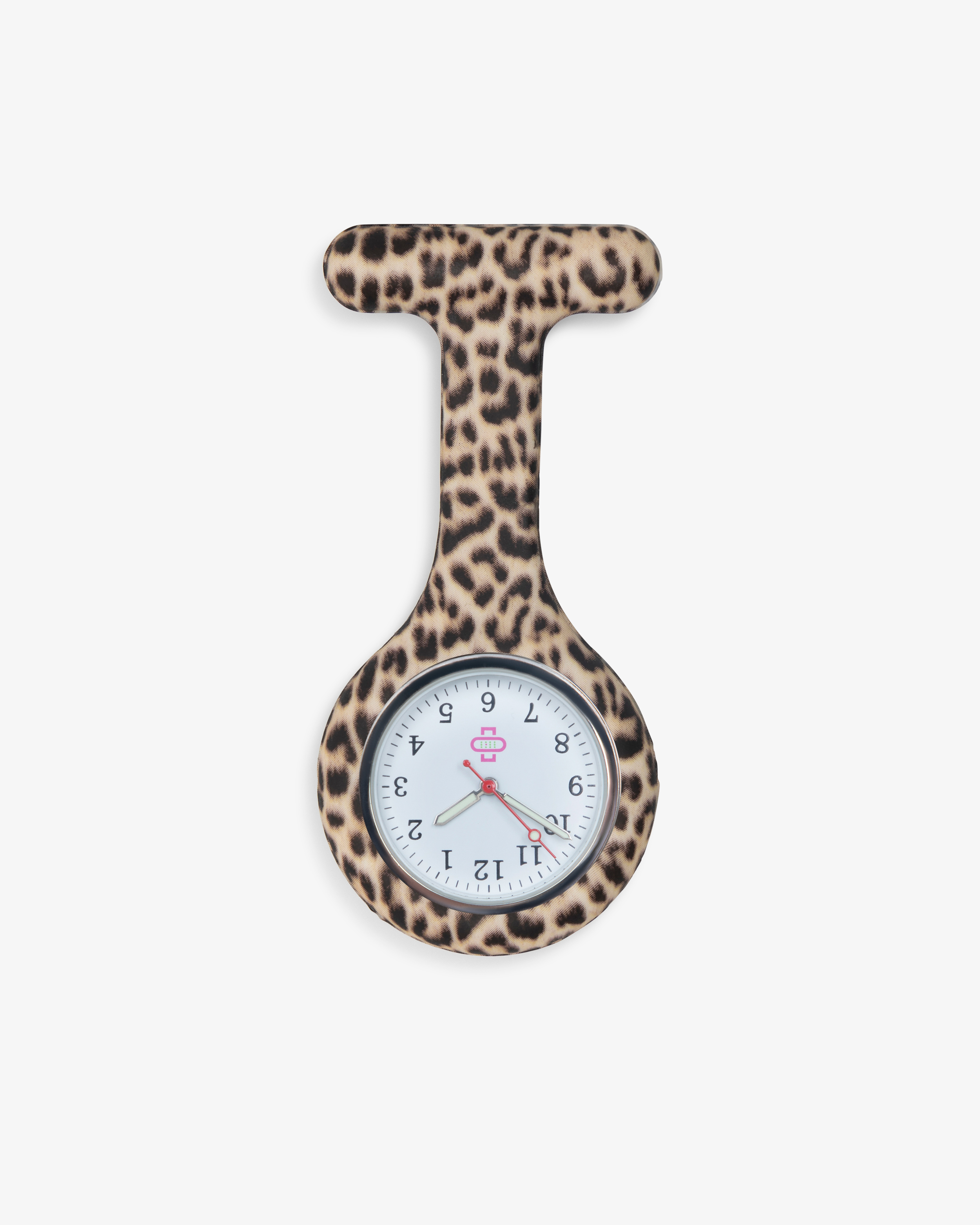 Gi arbeidsantrekket ditt en vill og trendy detalj med vår sykepleierklokke i leopardmønster. Denne klokken kombinerer funksjonalitet med et dristig og unikt design som vil skille seg ut på arbeidsplassen.